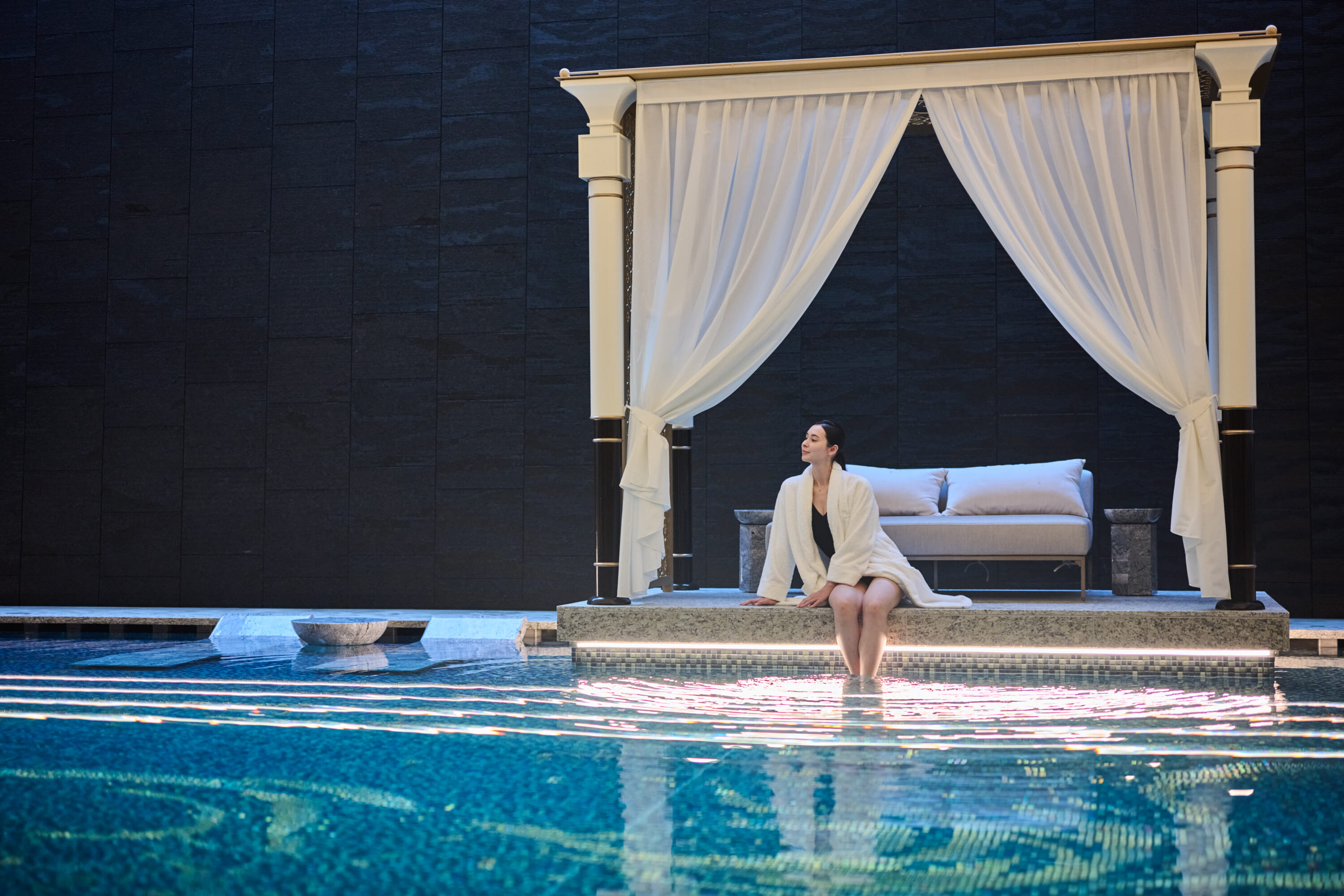 The spa’s treatment menu draws on traditional healing methods and unique techniques as well as seasonal Japanese herbs, with restorative therapies designed to melt tension and renew the senses. Guests can slip into the shimmering mosaic-tiled pool or stretch out on the cabana-style daybeds by the water, enjoy a workout in the expansive state-of-the-art gym or unwind in the beautifully illuminated natural hot spring baths and saunas.