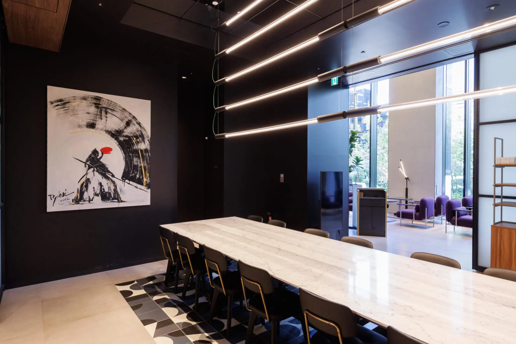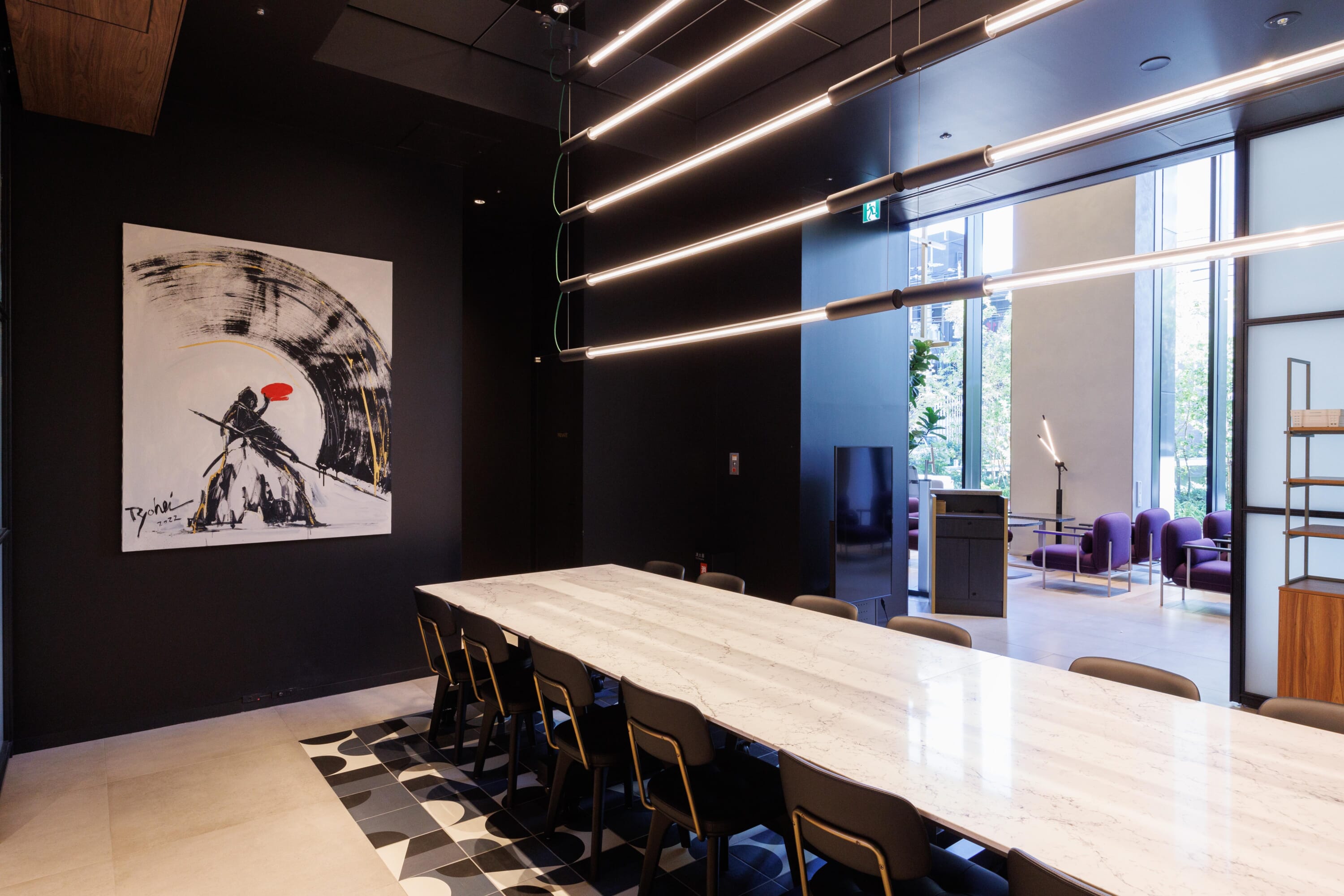 At the entrance of Cross Life Hakata Yanagibashi sits a striking, stately boat sculpture by Akiko Inaba, an artist living in Fukuoka. The hotel also has a special program dedicated to uncovering hidden talents in the region, who are selected to create art that will be displayed in the lobby. Even the floor number signs are works of art: Each one is a piece of custom Koishiwara ware, a traditional Fukuoka craft, hand-made by a different local kiln.