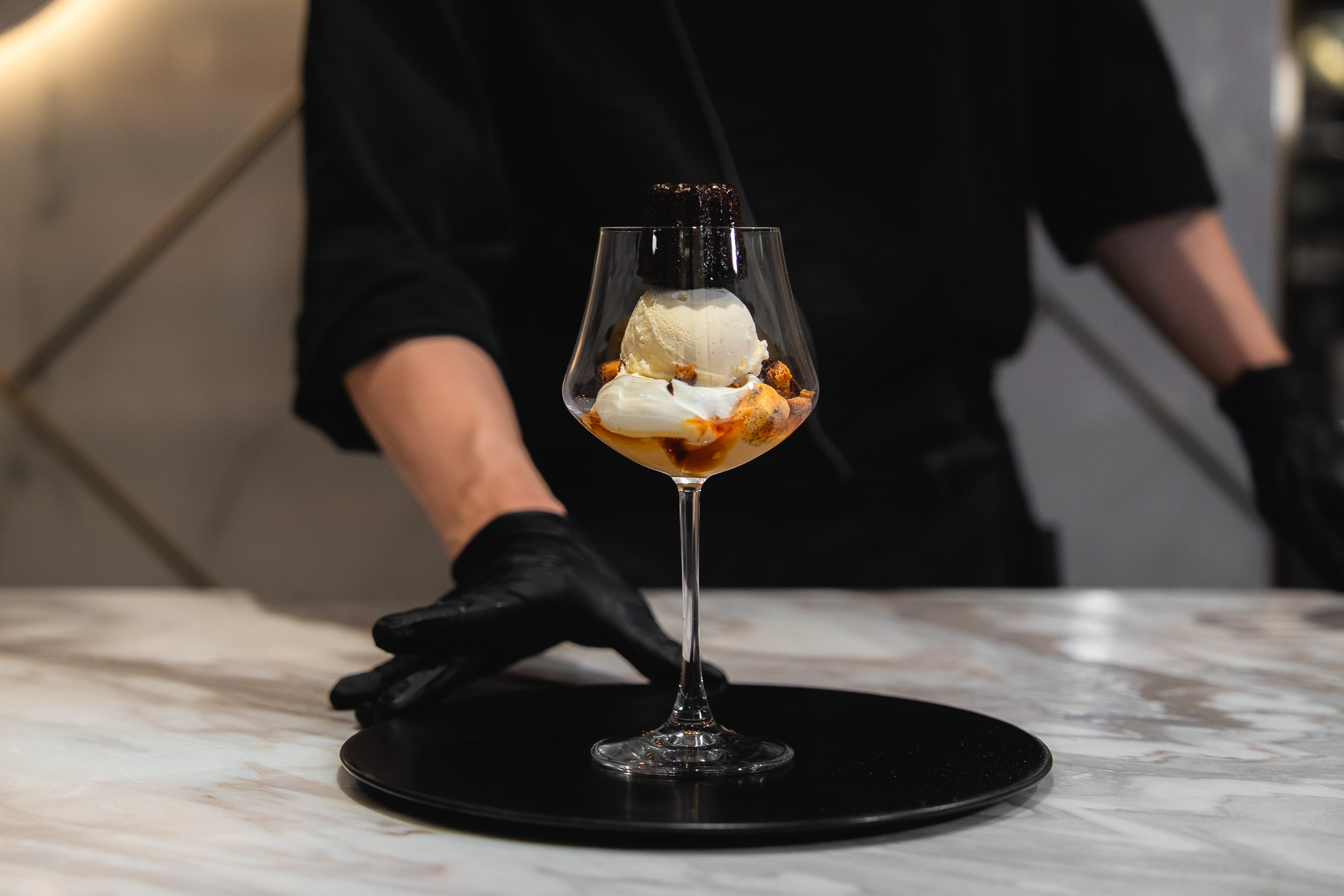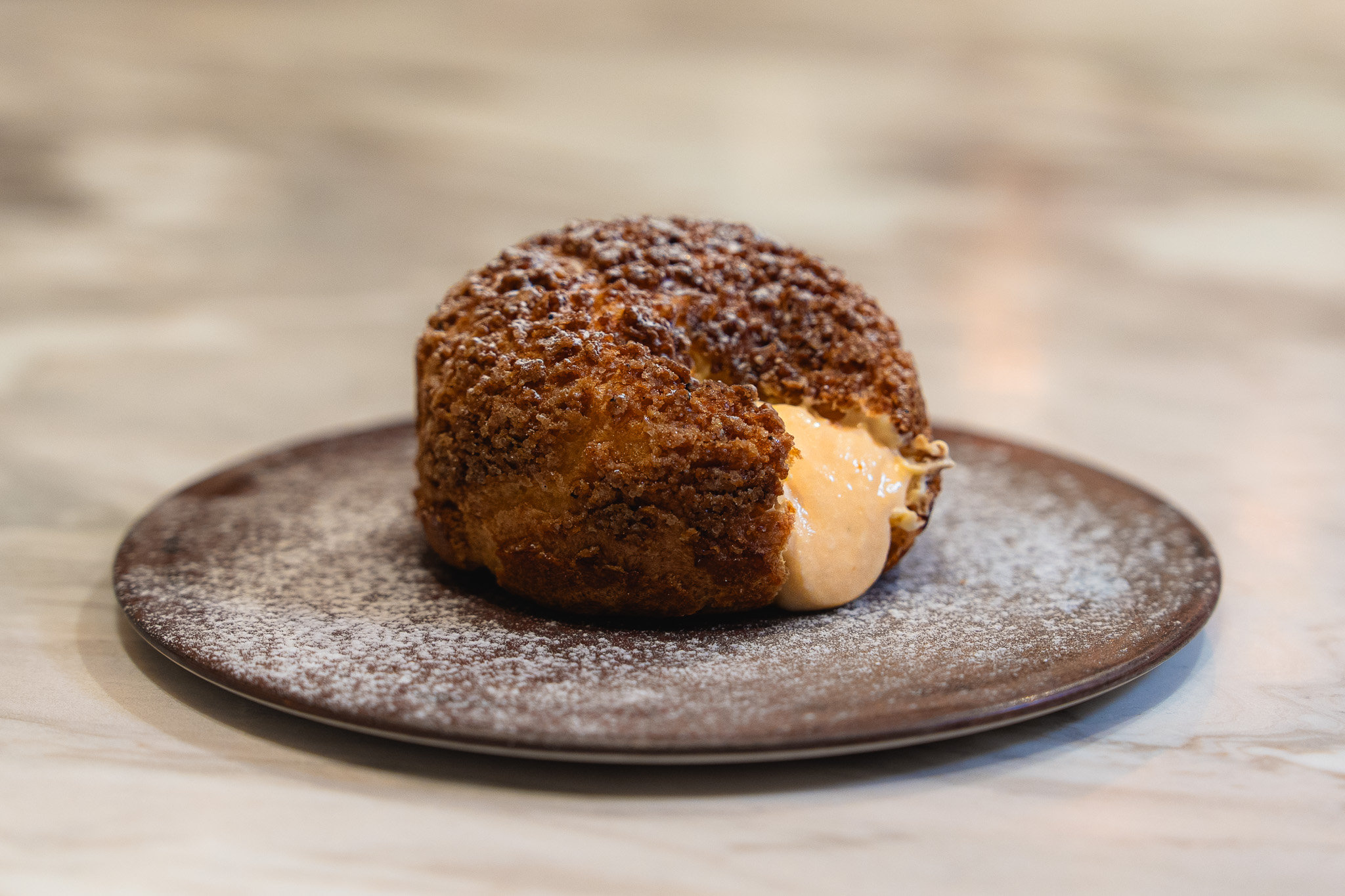 The signature cream puffs — available in chocolate, vanilla and seasonal flavors, including matcha — are filled right in front of you, ensuring freshness and maintaining the perfect crispiness of the outer layer. Watching the chef at work is another great part of the experience.