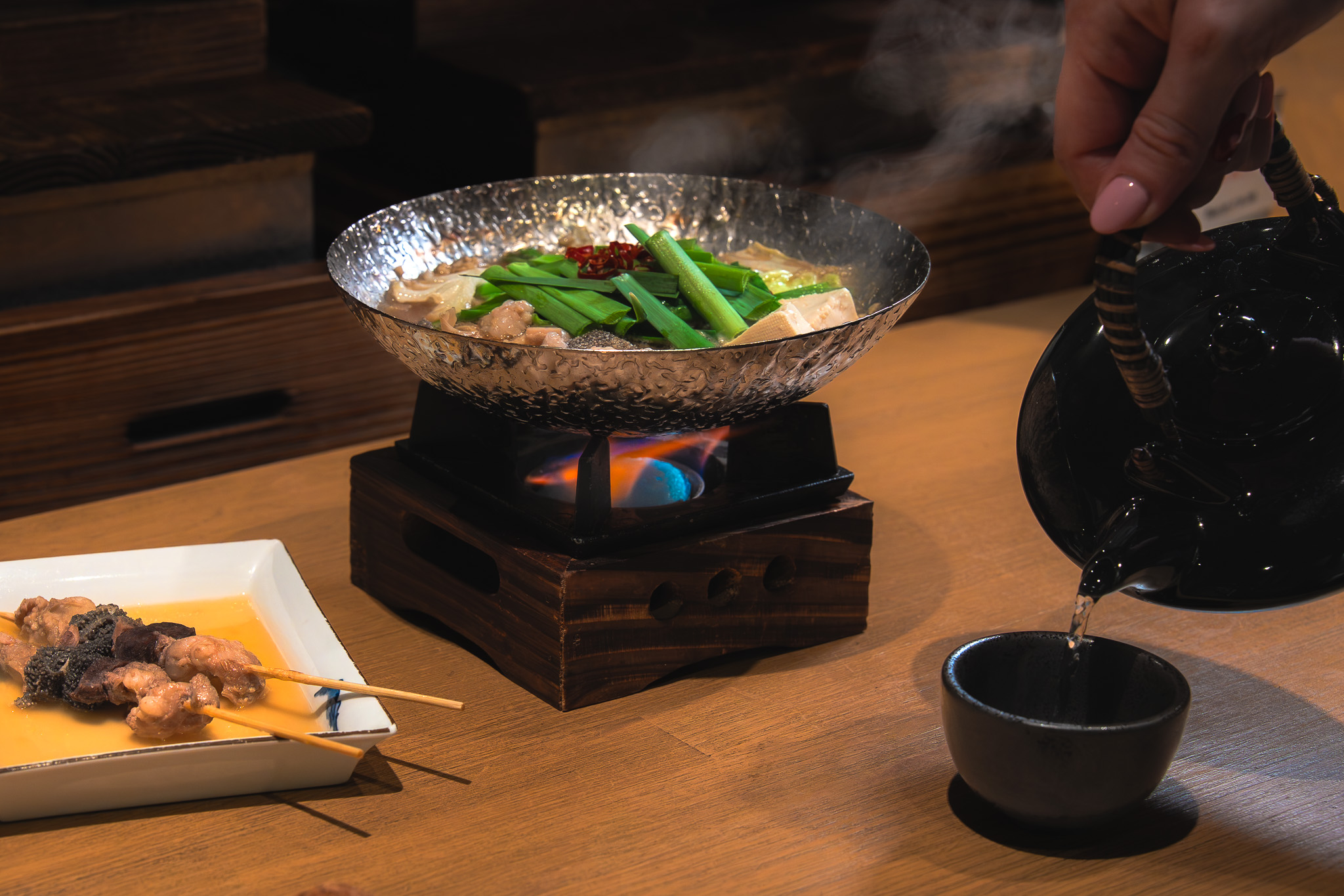 For a heartier option, try the Hakata-style motsunabe, a rich hot pot with tender beef offal and a robust Kyushu soy sauce base, enhanced with tofu and cabbage. To complement the food, Hanare offers a sake tasting set, letting diners explore several carefully selected labels in small pours, enhancing the flavors of each dish.