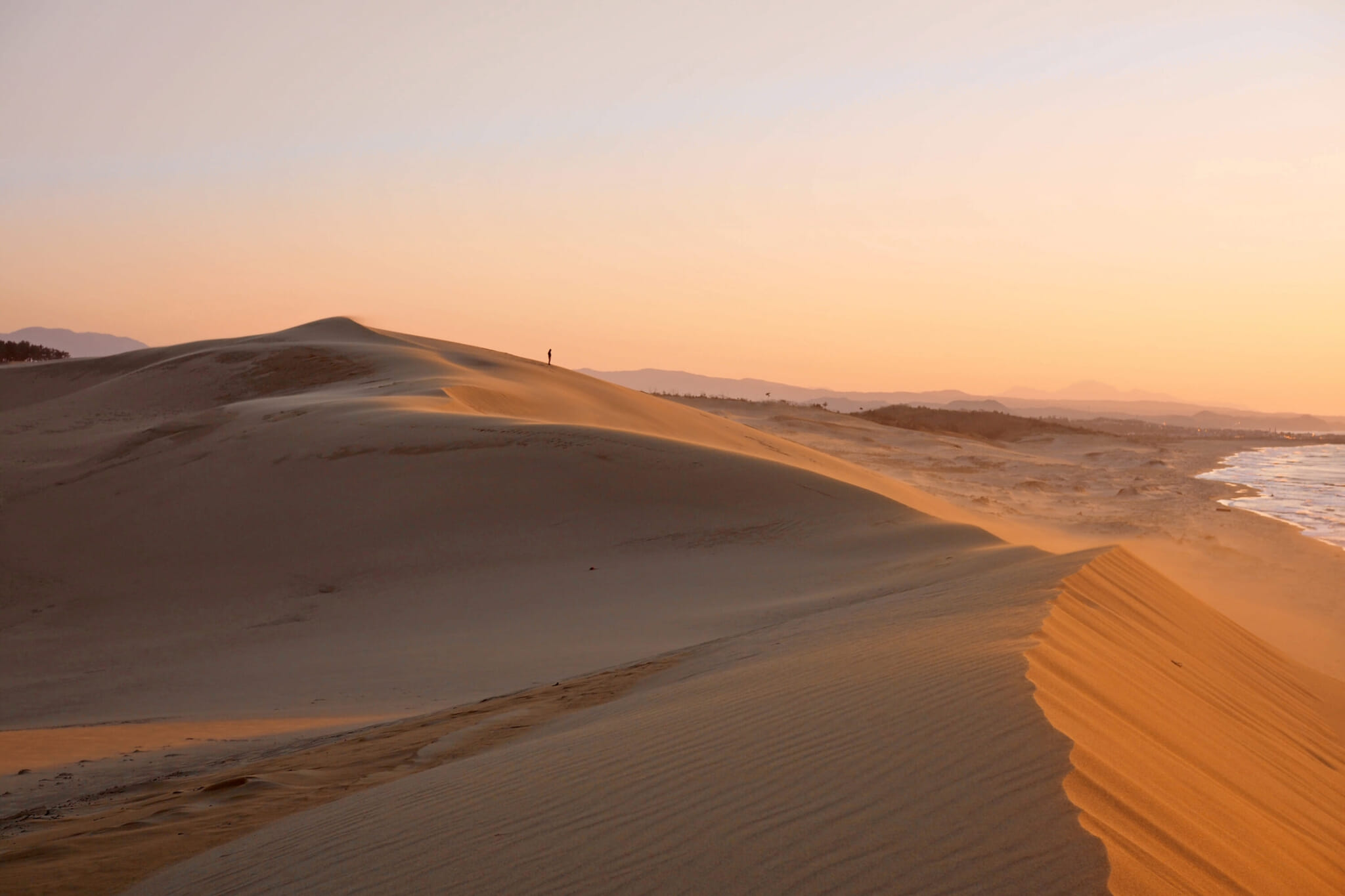 The city of Tottori has a surprising claim to fame: Japan’s biggest natural sand dunes. Spanning 30 square kilometers, the Tottori Sand Dunes are designated a national natural monument. The dunes are a living history lesson, shaped by intense winds over 100,000 years and containing layers of volcanic ash. Visitors can enjoy camel rides, sandboarding or even paragliding.
