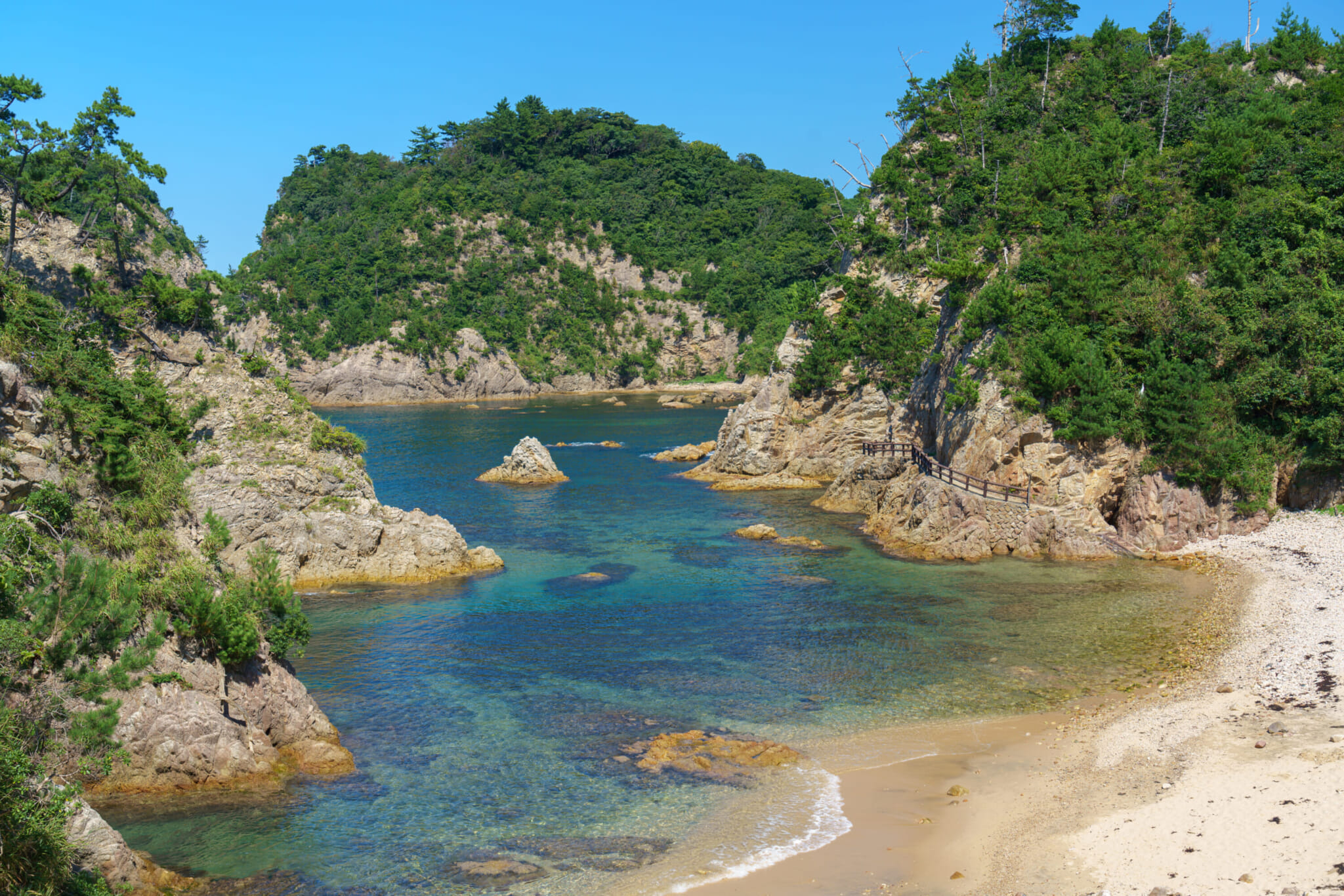 Uradome Beach in Iwami is a must-visit part of the San’in Kaigan Geopark. It’s known for its dramatic sea walls, caves and jagged rocks formed by marine erosion, which contrast beautifully with its calm, clear waters and white sandy beaches. These beaches are perfect for swimming, snorkeling and kayaking, offering both adventure and tranquility.