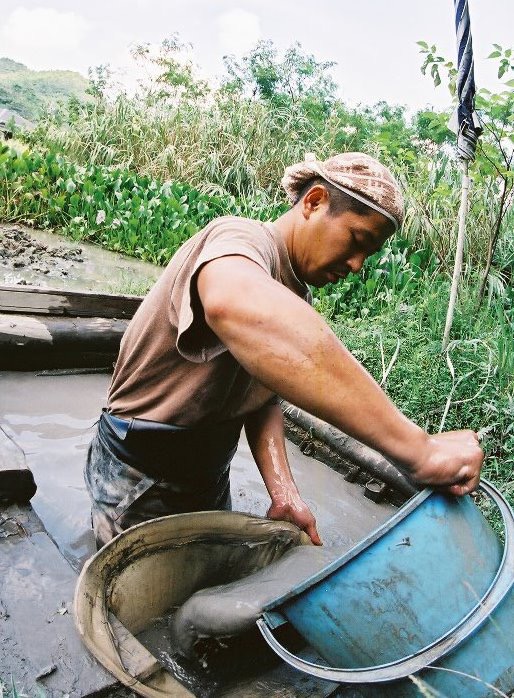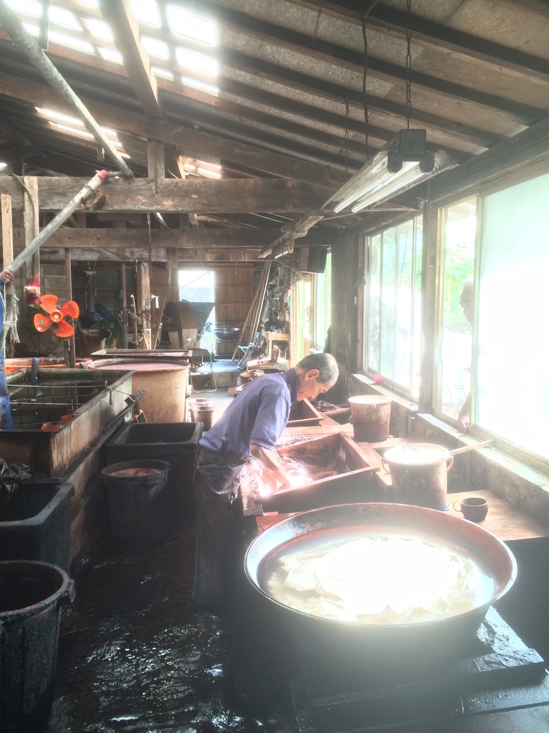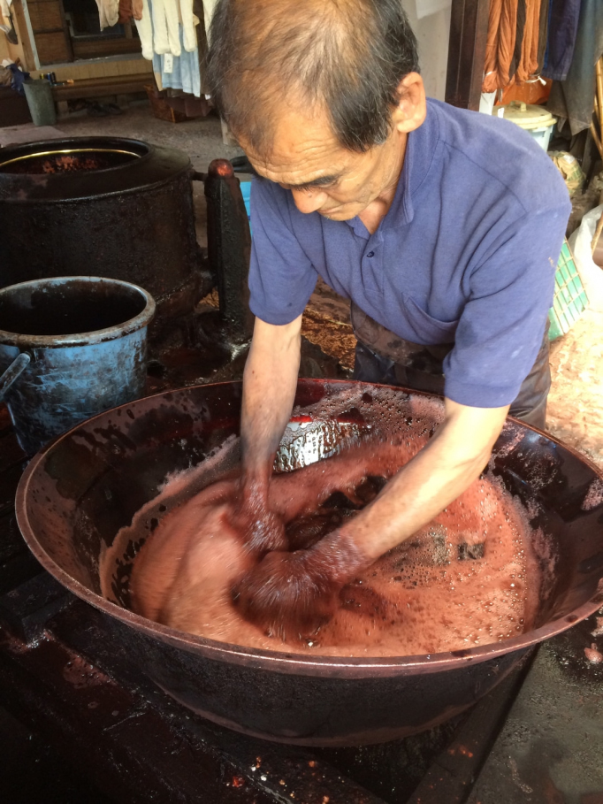 One of the textile industry’s worst offenders when it comes to environmental destruction is synthetic dyes. They don’t completely bind themselves to the fabric and toxic waste is released into the wastewater stream. Amami Oshima’s mud-dyeing exclusively uses naturally available ingredients: twigs and branches from the yeddo hawthorn shrub and iron-rich mud. The mud brings forth a rusty red-brown, but when combined with tannic acid from the yeddo hawthorn, artisans can create a deep black color – a difficult shade to achieve in natural dyes.