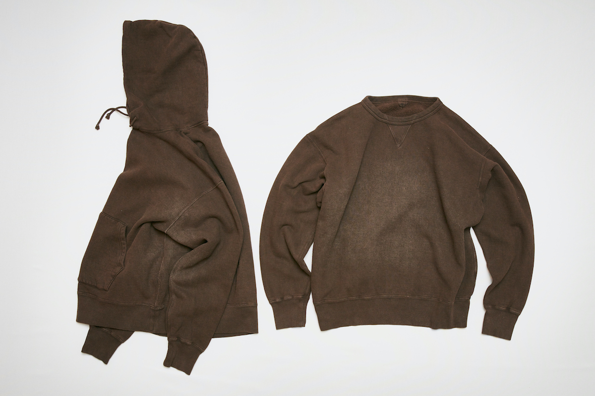 The process of mud-dyeing clothing is mostly done by hand and can take up to a year from start to finish. Yeddo hawthorn twigs are broken into small pieces and simmered in a large cauldron. Clothing is first dyed in this mixture about 20 times. Each garment is then dyed a total of about 80 times – one mud-dyeing session to every 20 yeddo hawthorn dye dips – to achieve the distinctive black Oshima shade. Because this is a completely natural process dependent on its natural surroundings – climate, temperature and humidity – no two items will have the exact same shade, making each item unique.