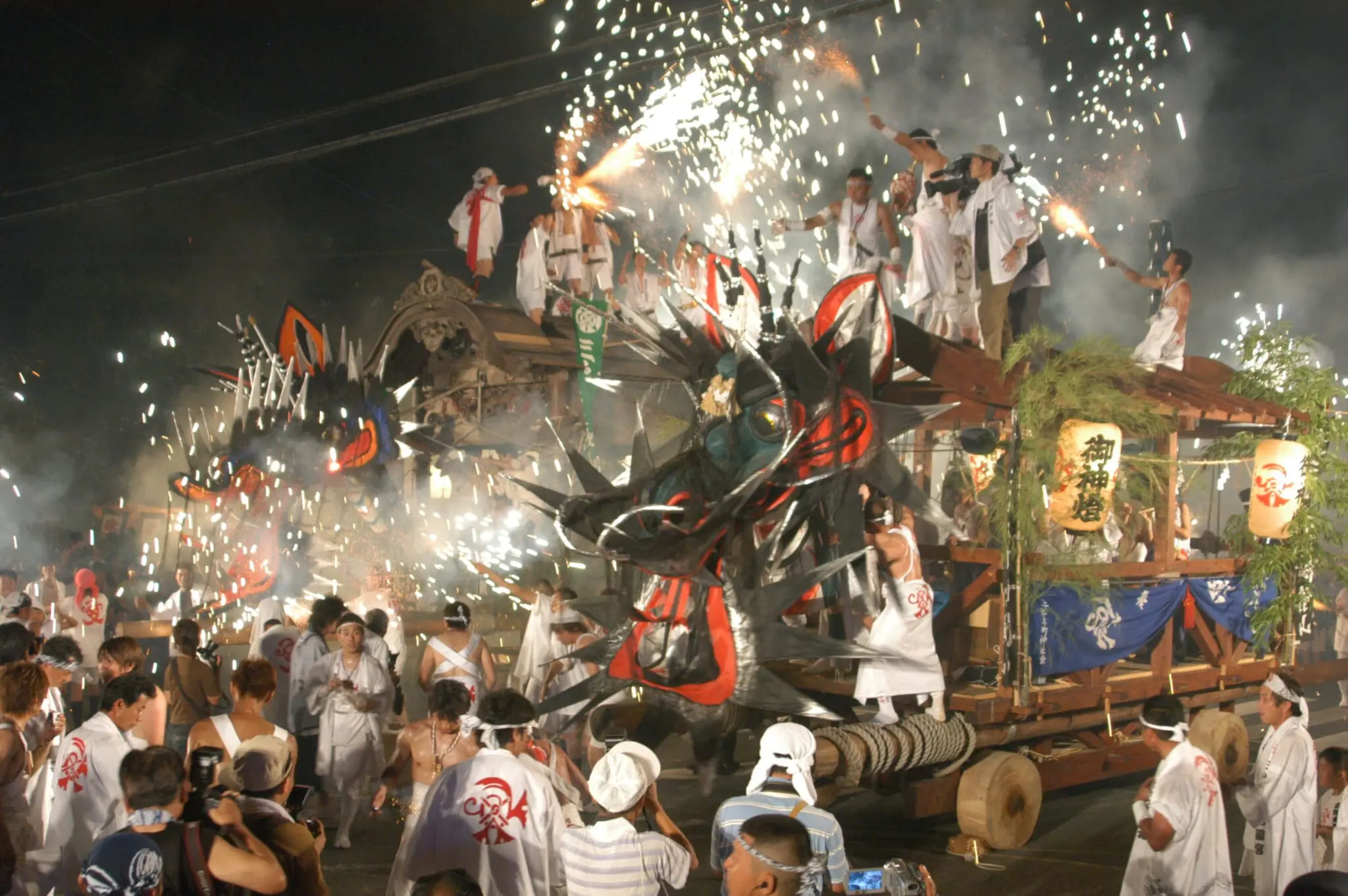In the south of Fukuoka Prefecture, Omuta hosts a unique festival called the Omuta Daijayama Festival on the fourth Saturday and Sunday of July. The festival’s origins trace back over 300 years. It’s celebrated magnificently, with a parade of massive, snake-shaped floats, called daijayama, that open their eyes wide and emit colorful sparks from their mouths. A cherished tradition, kamase, involves placing children in the mouth of the giant snake-shaped floats; getting “bitten” in this way is believed to ensure good health, and it’s an experience nearly all locals have shared.