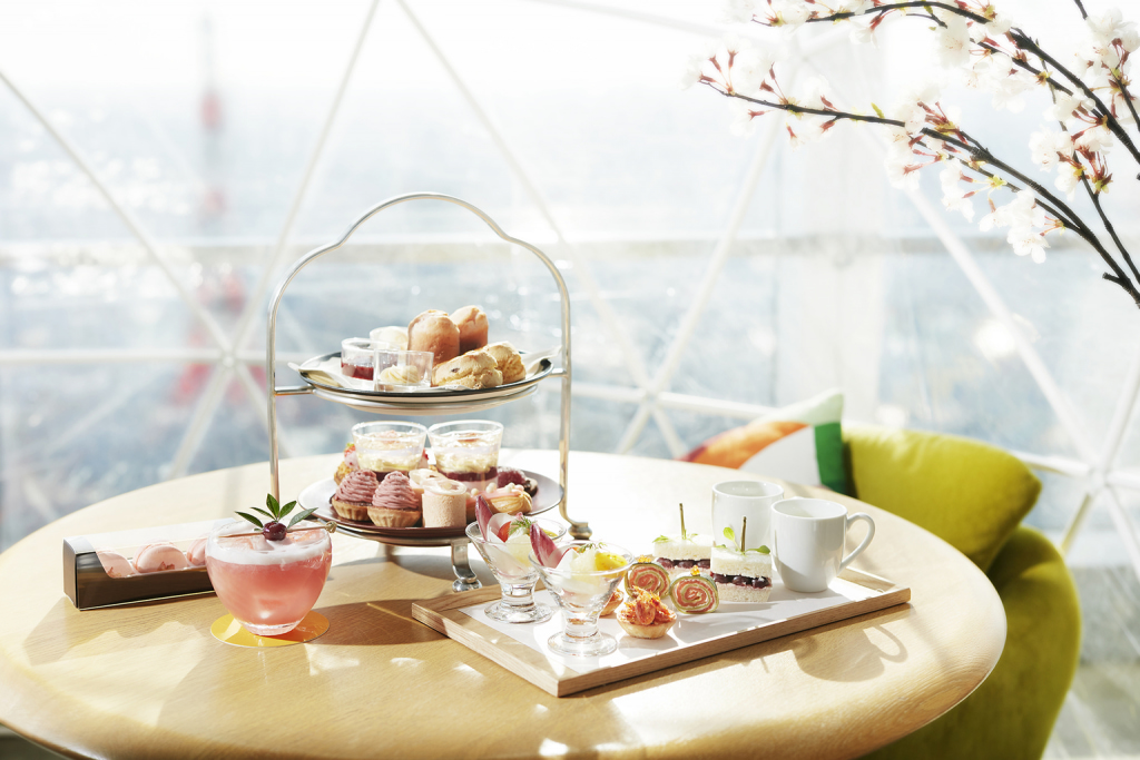 Admire the cherry blossoms as you indulge in delicate sakura-inspired delicacies including cream cheese and griotte cherry sandwich, sakura Mont Blanc and a custard-like, snow-aged potato potage enhanced with pink hues and savory sakura petals. For groups of three or four, reserve ahead to enjoy an exclusive sakura igloo experience with views of Tokyo Tower. (*Unfortunately the igloo experience is canceled*)
