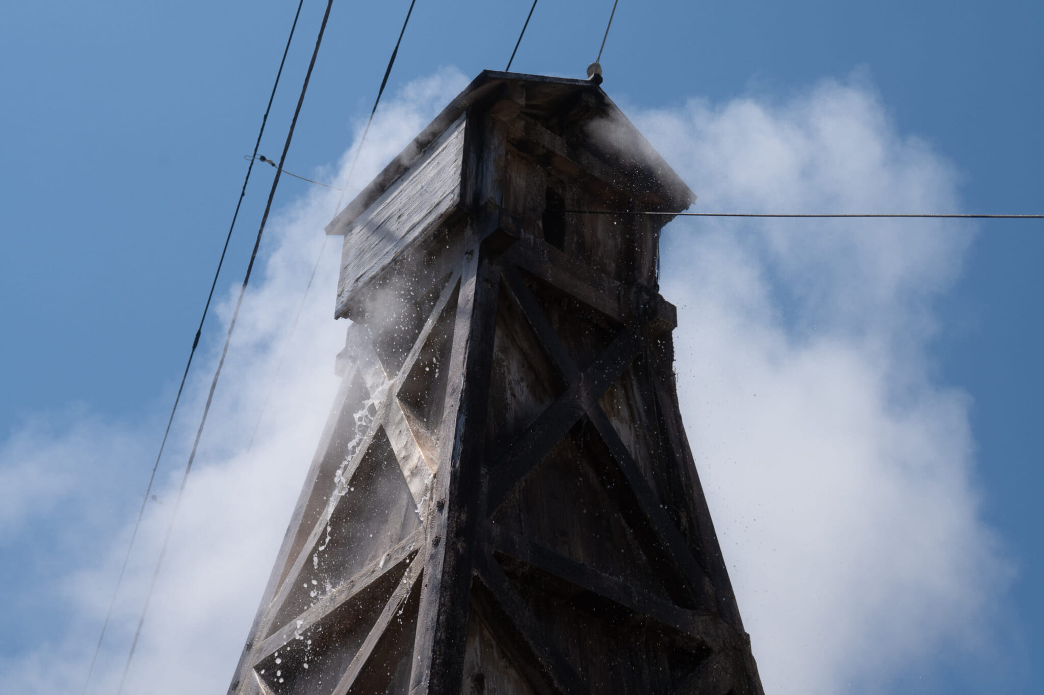 Arriving at Izu-Atagawa Station, one of the first things every visitor will notice is clouds of steam wafting from several picturesque drilling towers scattered throughout town; these were historically used to access hot water deep underground.