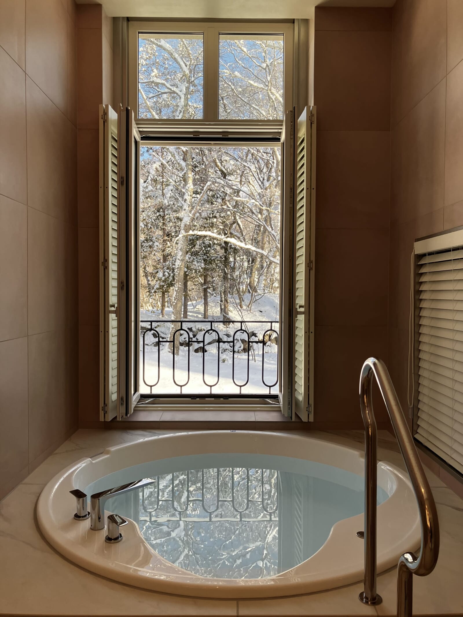 Venturing beyond your room, you’ll find a host of cozy and luxurious activities in the hotel. Curl up by the fireplace in the winter garden by the hotel’s entrance, or borrow a book from the sensuous and refined library bar before decompressing with a glass of wine or a hot beverage; the library is stocked with rare books from hotel owner Hirosuke Tobe’s personal collection, many of them focused on art and architecture. There are also a number of day-trip hot spring facilities within walking distance of the hotel should you want to spend the day in warm healing waters drawn from the earth, and the grounds around the hotel are lovely for taking brief walks.