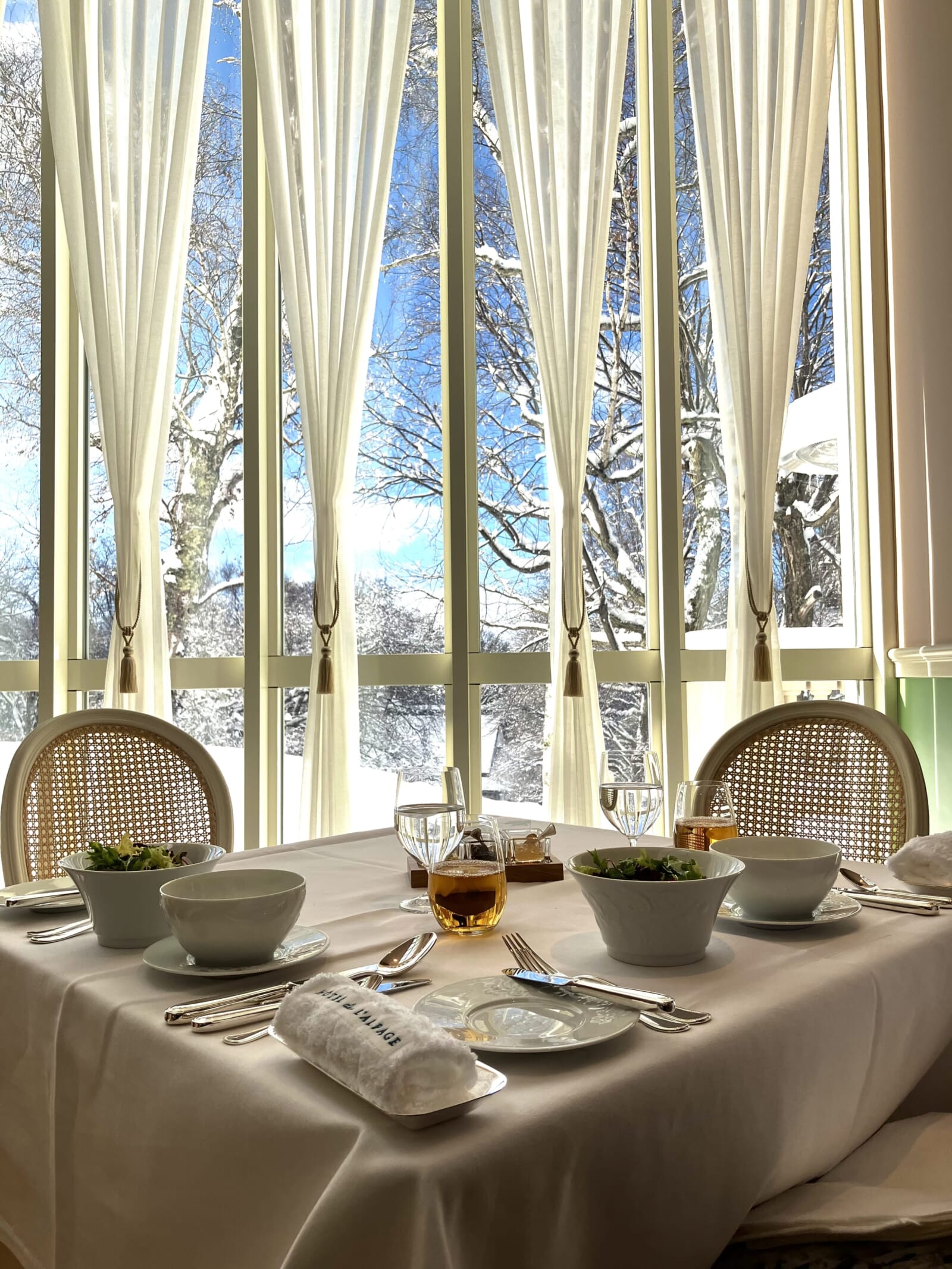 The hotel’s in-house restaurant, Le Jardin, serves sophisticated yet unpretentious French cuisine tailored to the season. Contemplate at the snow-covered grounds while enjoying a course meal of winter delicacies, paired with French wine selected from the hotel’s vast wine cellar, before heading to the adjoining bar area for a delicate digestif or a cigar in the dedicated smoking space.
