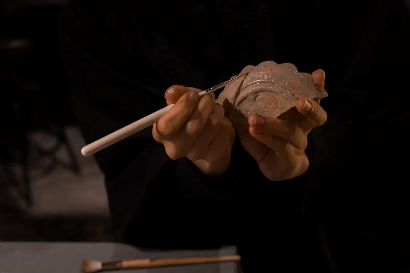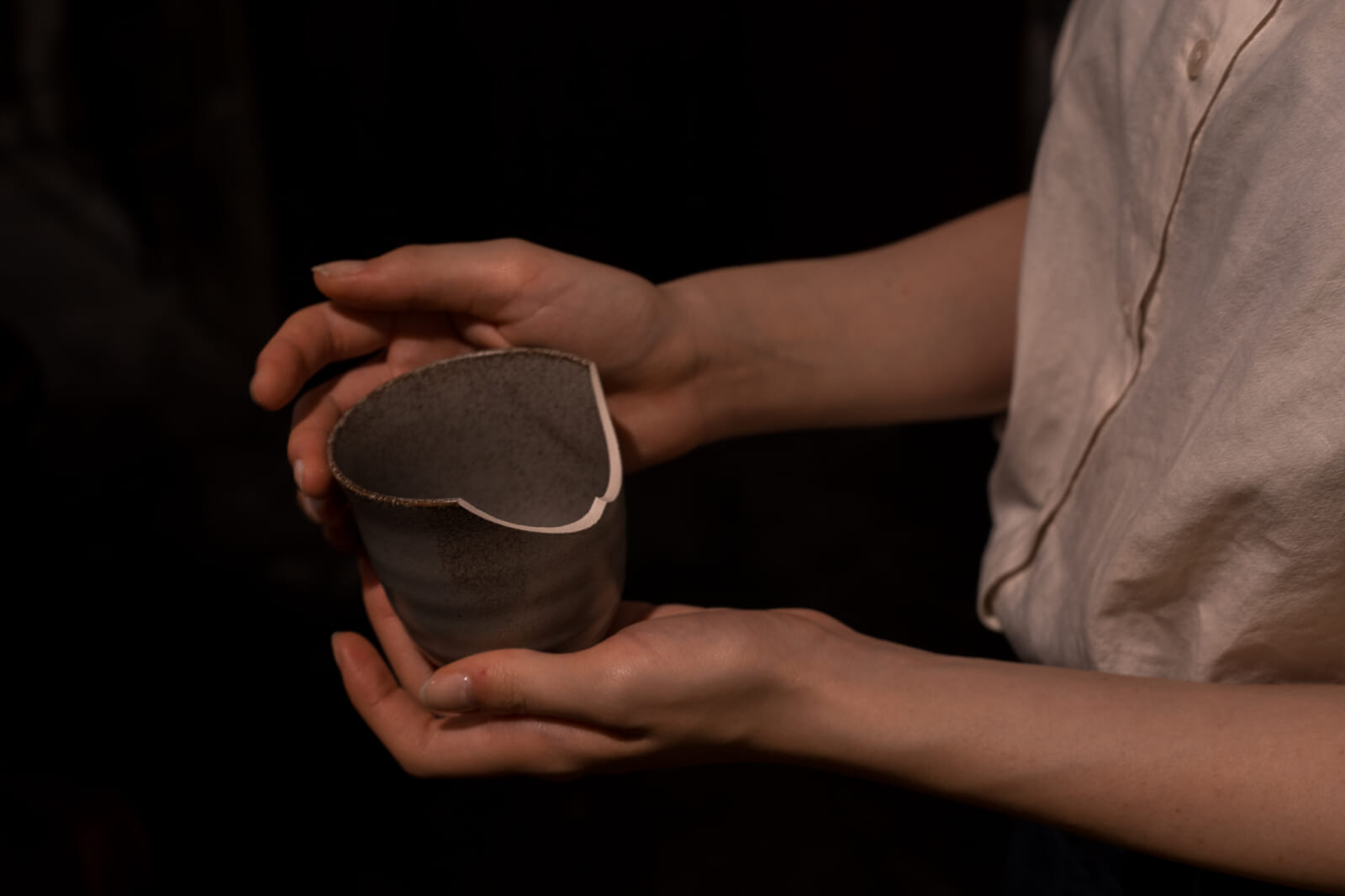 “Kintsugi is about fixing broken things and making the cracks beautiful in their own way,” she says, running a finger along a piece’s ebbing gold line of paint. “It’s about embracing the brokenness and turning each crack into something even more valuable, something with a story of its own.”