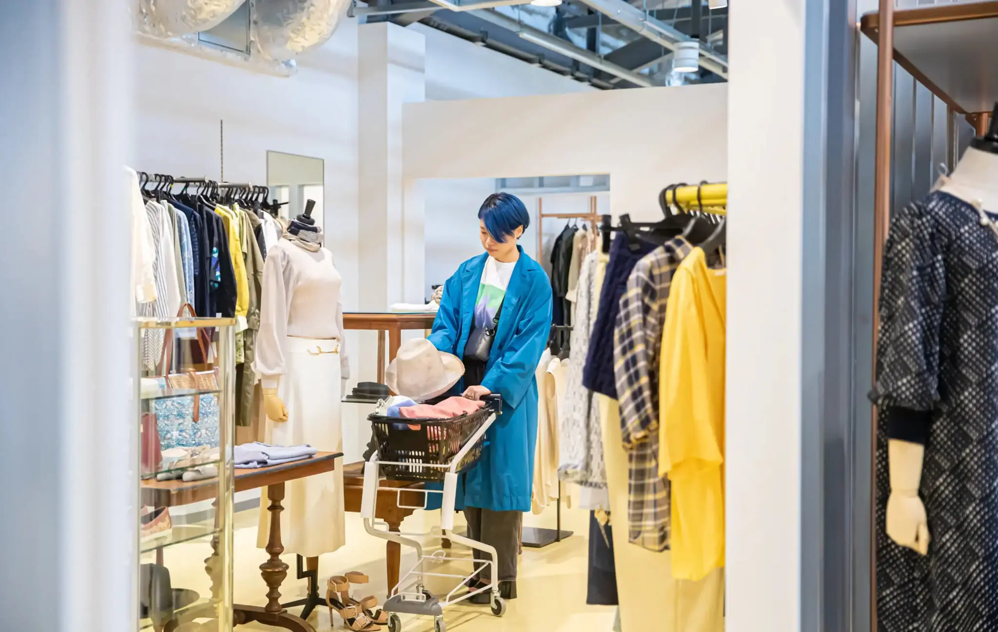 To enter the space, visitors must pay a small fee of ¥300, a portion of which goes directly to organizations working toward social change. Befitting the entrance fee, Kisarazu Concept Store feels less like a traditional retailer and more like a fashion theme park — a massive, interactive wardrobe where visitors can spend all day trying on as many outfits as they please at the complex’s spacious Fitting Studio. In contrast to the world of fast fashion, where consumers order clothing they’ve never actually seen or touched before with the click of a button, Kisarazu Concept Store emphasizes the idea that you can’t truly know a piece of clothing until you’ve tried it on.