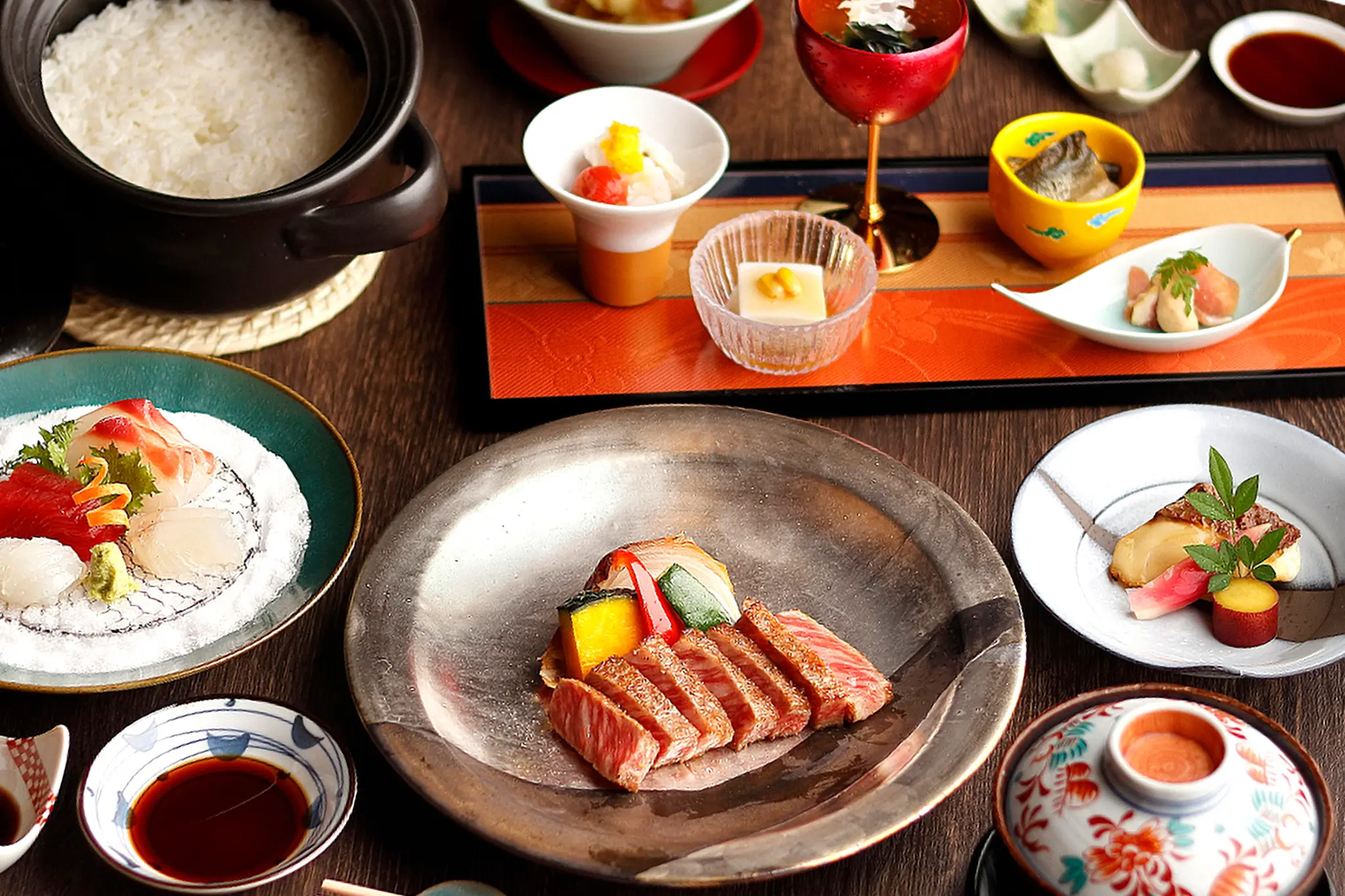 Dining at Kojimachi Nadaman Fukuoka Bettei is a chance to sample some of the prefecture’s culinary classics, ranging from Itoshima pork belly shabu-shabu and Hakata jidori mizutaki (a popular chicken hot-pot dish) to tender Hakata wagyu steaks from cattle raised for 20 months on certified farms.
