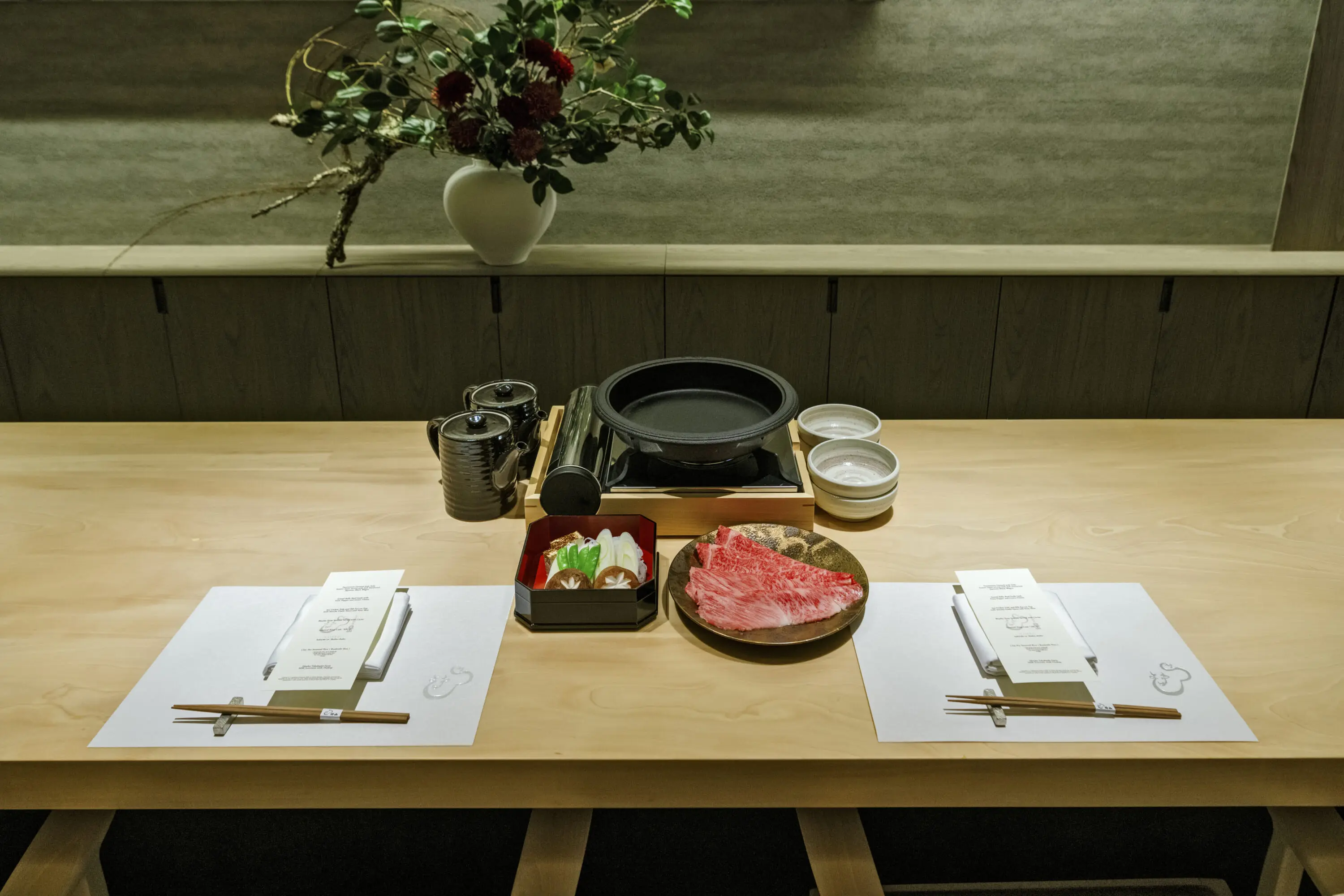Hiyama, a renowned Tokyo sukiyaki restaurant that has been awarded over 10 consecutive Michelin star awards, has a location also on the premises of Muwa Niseko. Lauded by culinary connoisseurs as some of the world’s finest sukiyaki, featuring high-quality Kuroge Wagyu beef, here it also benefits from the addition of locally-produced ingredients, showcasing regional flavors in tune with Hokkaido’s four seasons.