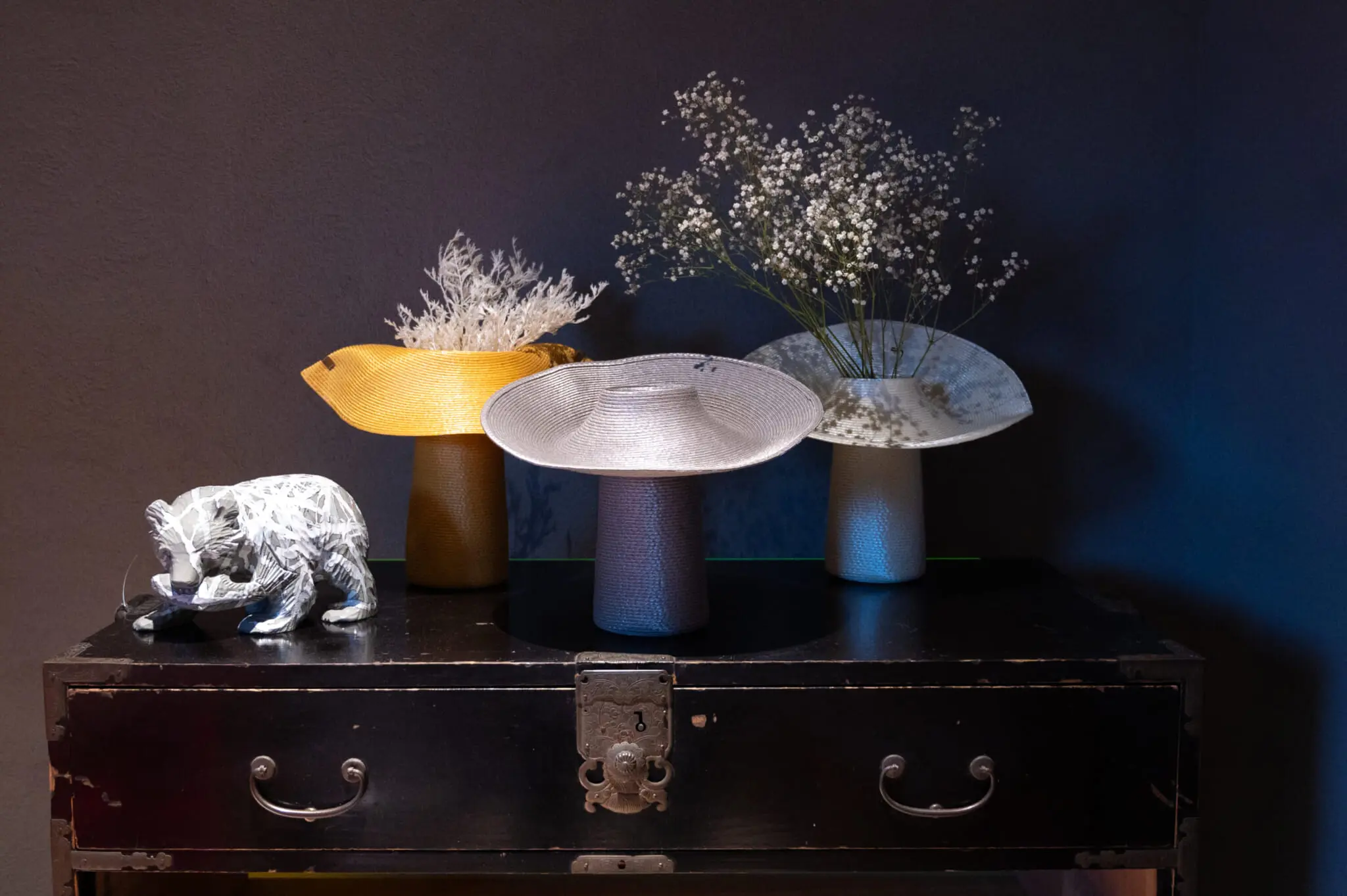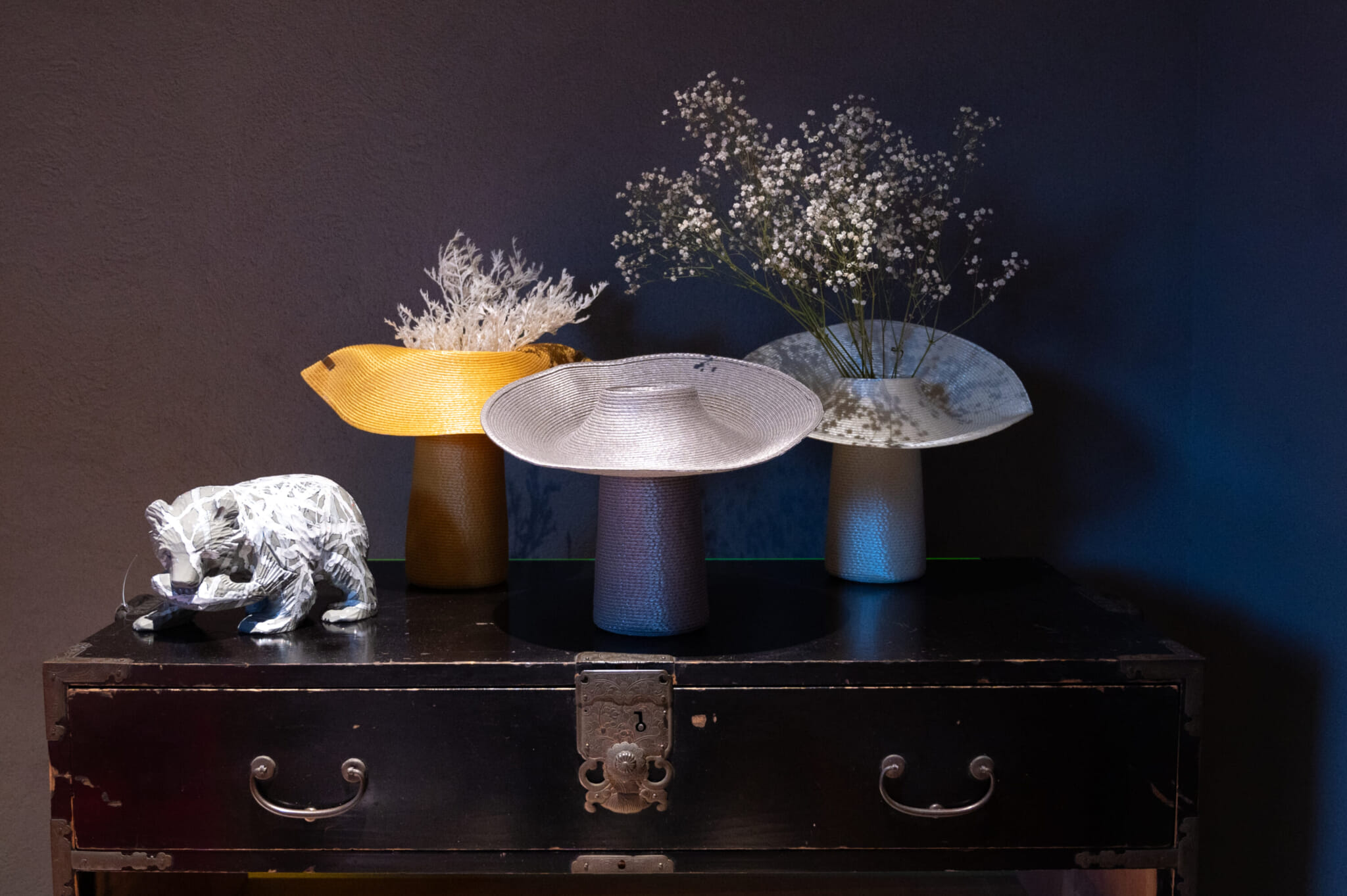 One example is the Crinkle Candle by Kitchibe, selected for the MoMA Permanent Collection. The fragrant candle is made from locally produced plant-based ingredients and placed in Japanese porcelain. Tableware enthusiasts can also buy elegant white plates and cups made in the revived Usuki ware style from Oita. Mobje’s woven vases, made with hat-making materials and techniques, are a wonderful example of diversifying a craft, as the brand is an offshoot of a millinery company from Hiroshima.