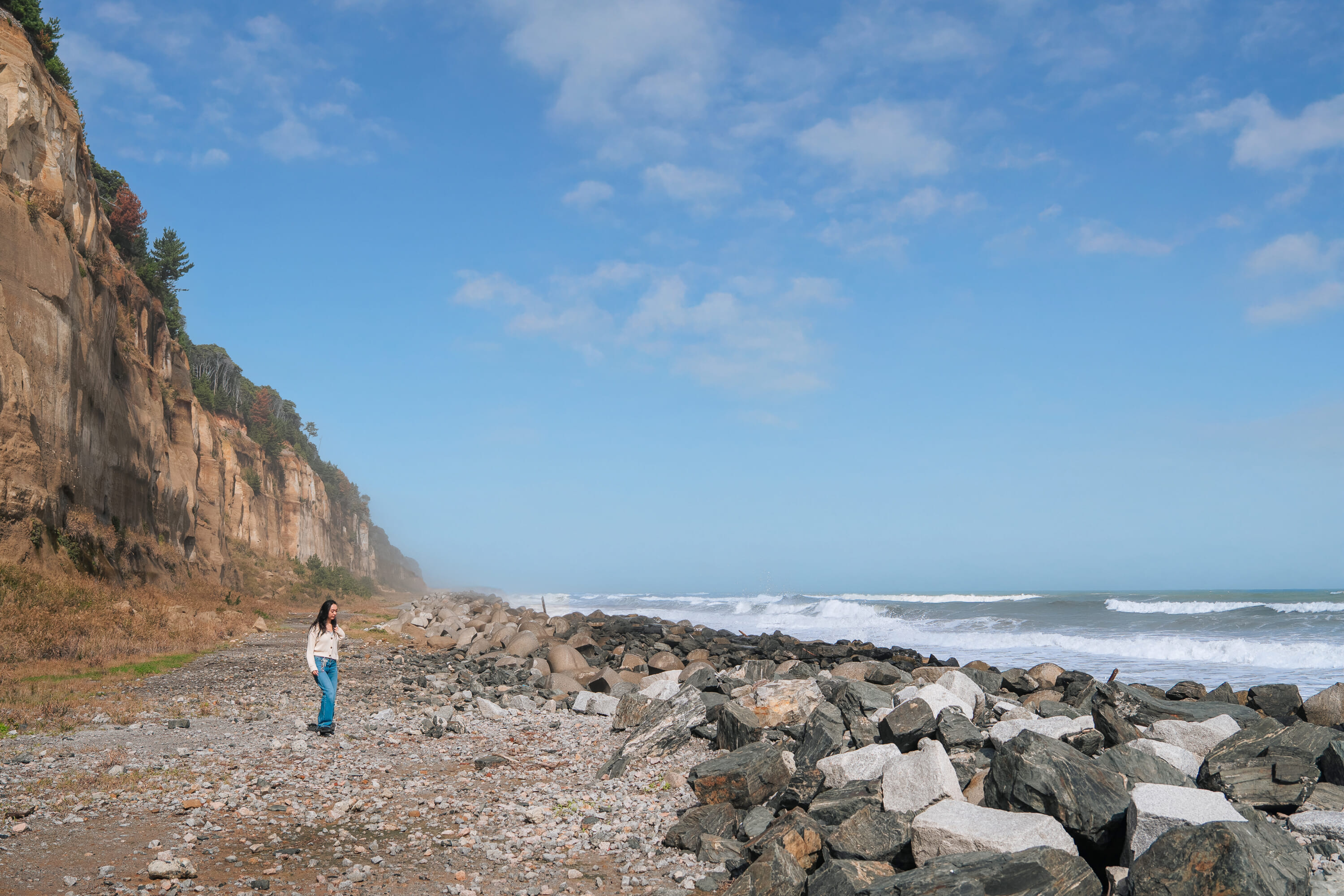 Just a short drive north of Hirono, Naraha Town moves to a slightly different rhythm — brighter, breezier and colored by the proximity of the ocean and impressive spiritual landmarks. Begin your walk at Tenjinmisaki Sports Park, where sweeping views of the Pacific set the tone for the footpaths ahead.