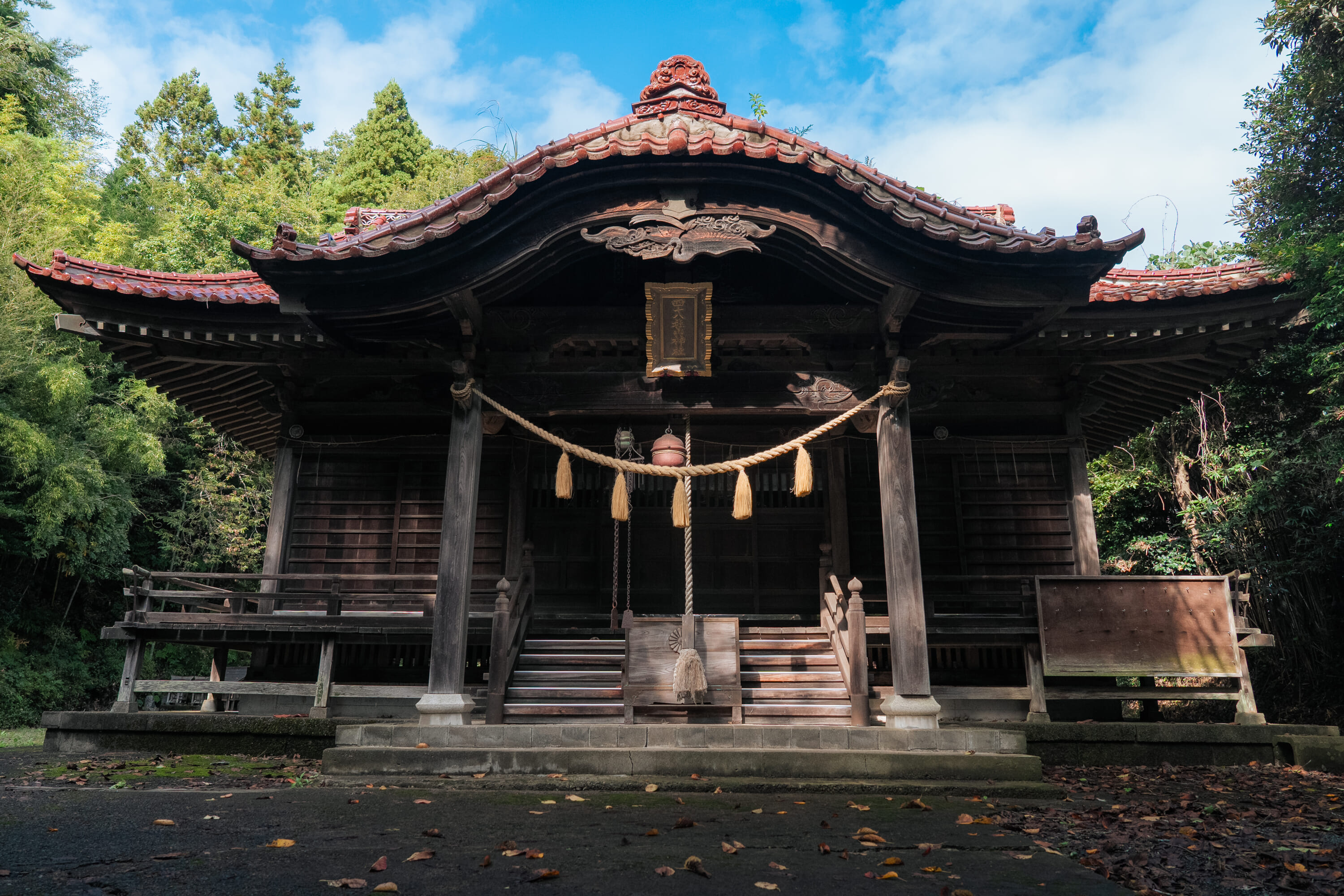 At the heart of town stands the Oicho, a giant ginkgo tree whose leaves turn the color of sunlight in autumn. Continuing on the Komichi Path, a trail that winds softly through a forest, with neat, tall conifers and down a bamboo-lined hill. Nearby but not exactly on the footpath, the Yu-yama no Kami and Kodomo no Kami monuments honor local guardian spirits of safety and community care.