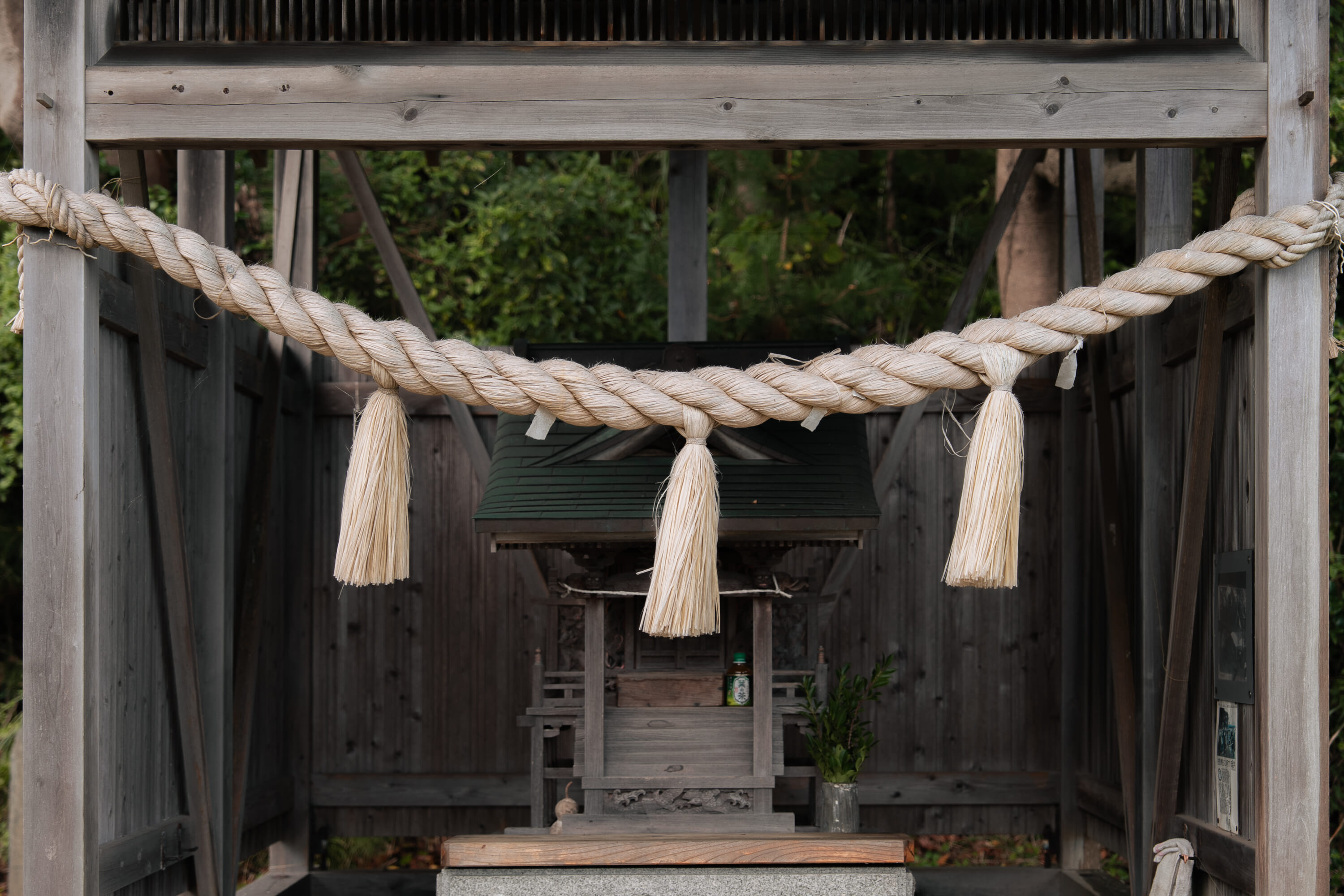 At the heart of town stands the Oicho, a giant ginkgo tree whose leaves turn the color of sunlight in autumn. Continuing on the Komichi Path, a trail that winds softly through a forest, with neat, tall conifers and down a bamboo-lined hill. Nearby but not exactly on the footpath, the Yu-yama no Kami and Kodomo no Kami monuments honor local guardian spirits of safety and community care.