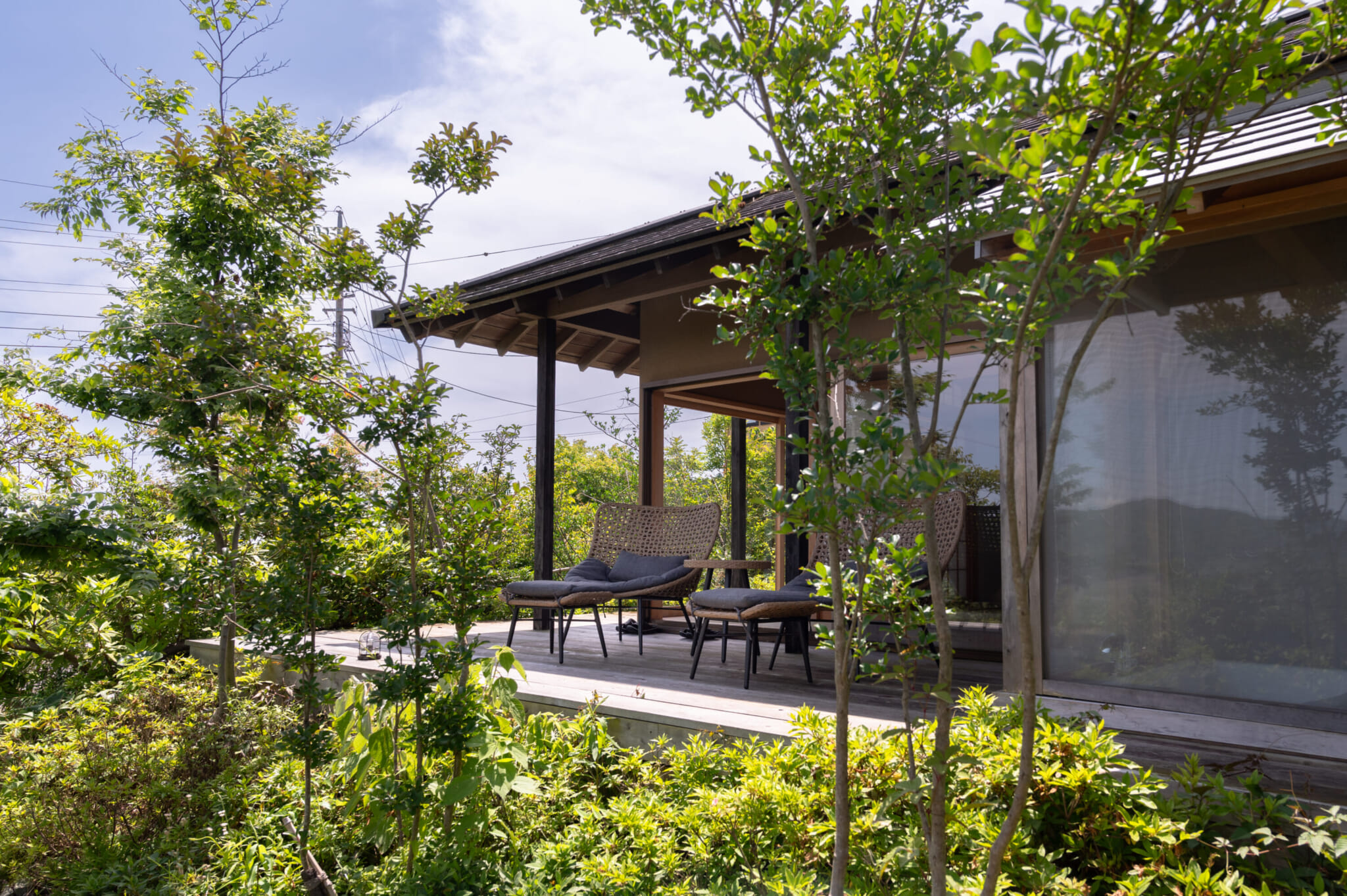 Bon-Mal Zen is a serene getaway tucked away on a hillside, offering a panoramic view of a satoyama landscape. Built with Japanese cypress, this hotel-quality private villa exudes tranquility and sophistication.