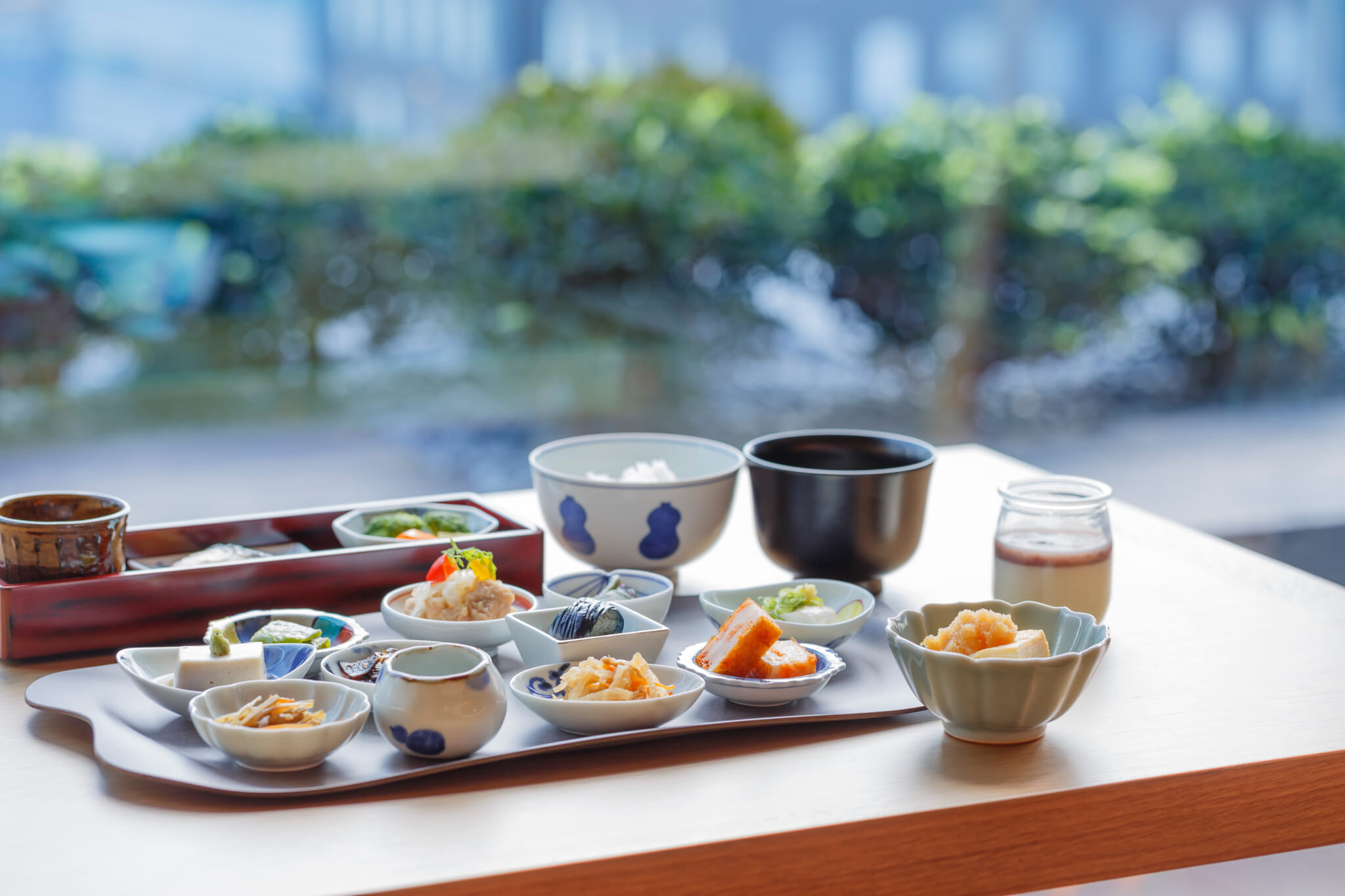 Ease into your day with breakfast at Nihonbashi Asada, the hotel’s signature restaurant on the 9th floor. Originally established in 1867 in Kanazawa City as “Asadaya,” this branch restaurant offers a Japanese breakfast featuring over 20 delicate, seasonal side dishes served in elegant small bowls. Western options are available as well.