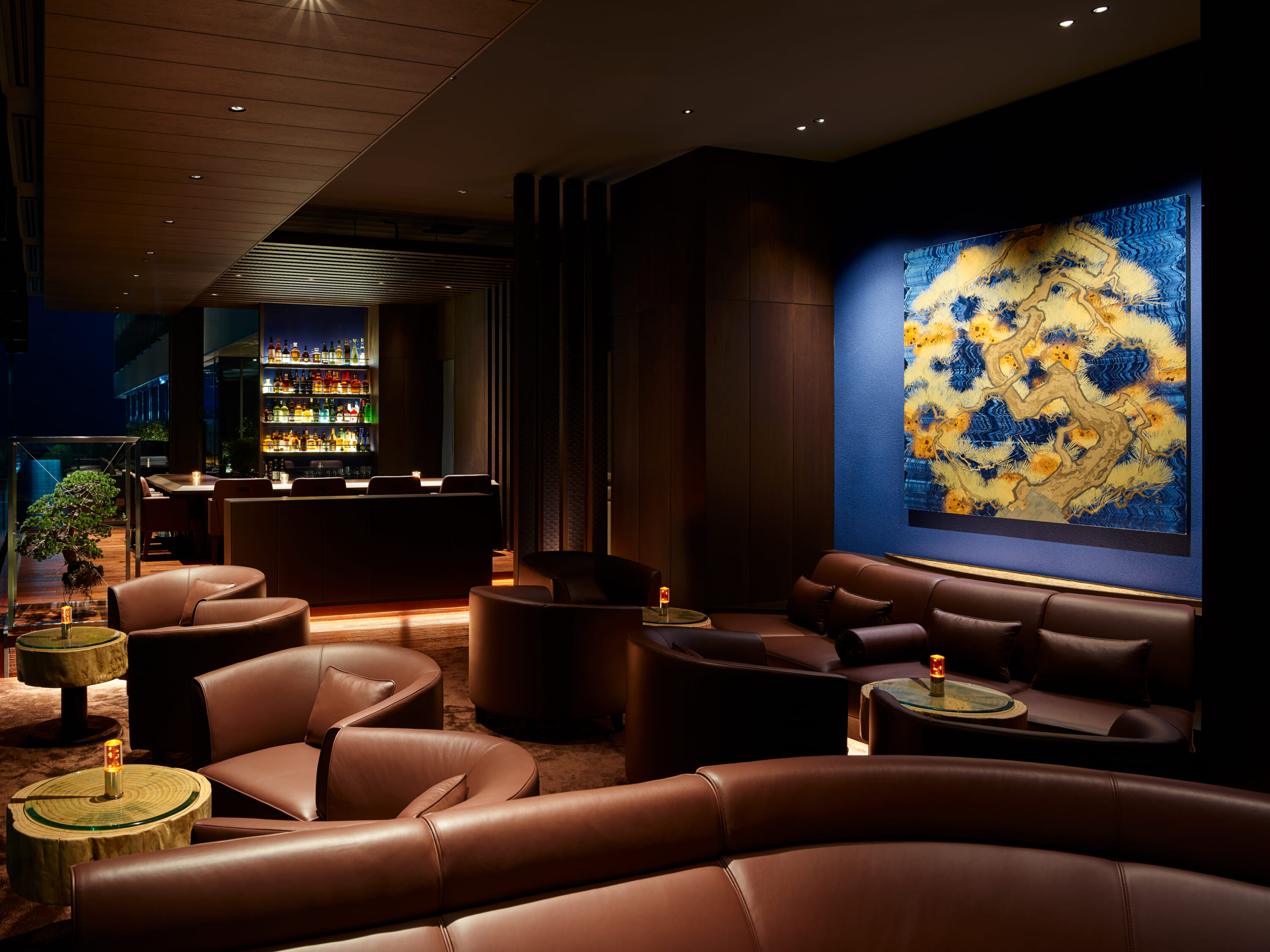 Start with a drink at Bar Matsu, the hotel’s elegant 9th-floor lounge. With panoramic city views and a moody, modern ambiance, it’s the perfect place to unwind before dinner. The bar specializes in seasonal cocktails crafted with Japanese spirits and ingredients.