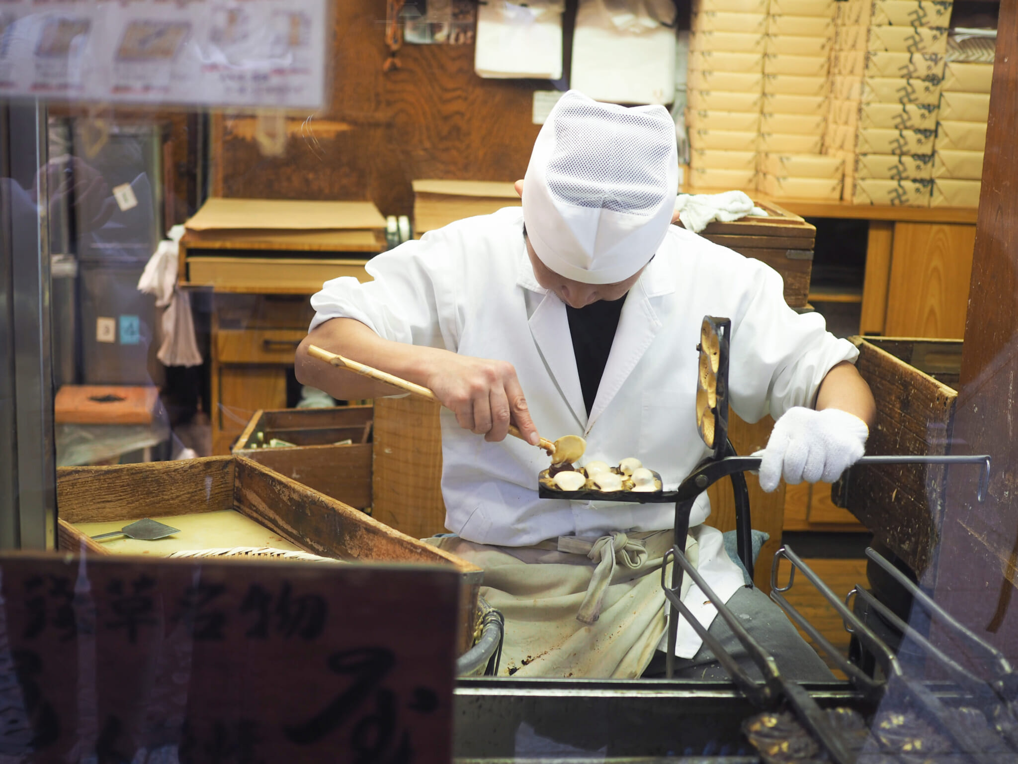After dinner, take a slow walk through Amazake Yokocho, a narrow lane lined with old-fashioned snack shops and cozy bars. The name refers to the sweet fermented rice drink, but you’ll also find nostalgic treats like ningyo-yaki (doll-shaped sponge cakes), which you can buy from local vendors.