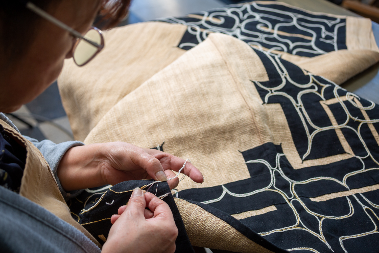 The resulting robes (amip) are adorned with elaborate embroidery and appliqué. There are various theories about why these patterns are embroidered, and some say they serve as spiritual shields. Ainu belief holds that evil can enter the body through openings, so the complex, beautiful patterns sewn onto the collars, cuffs and hems are meant to keep the wearer safe.