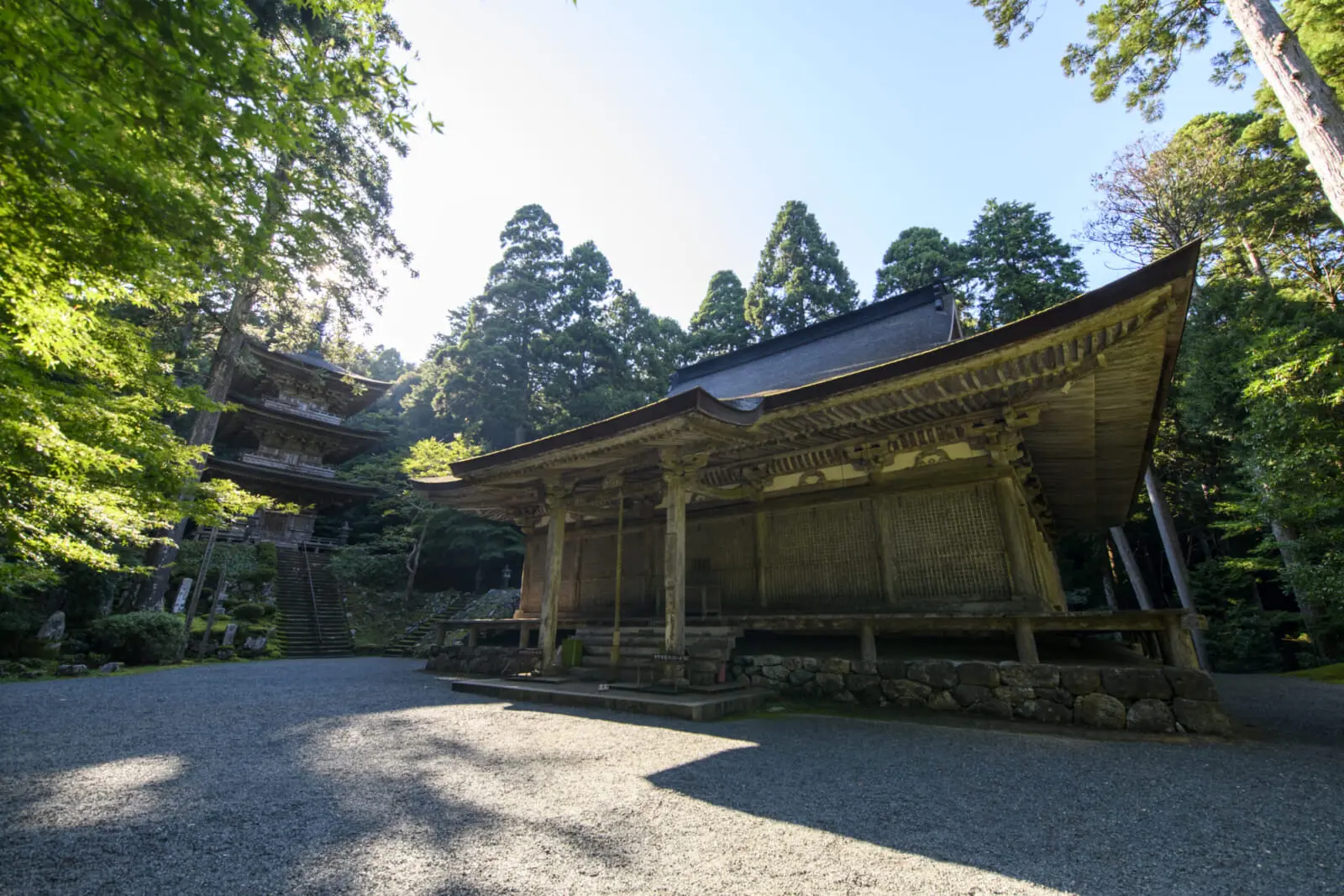 Stepping onto the grounds of Myotsuji Temple, located in the mountains of Obama, one can immediately feel the shift in the air. The area around the temple is rich with history, and the atmosphere is quiet and calming. The main features are the temple’s main hall and the accompanying three-story pagoda beside it, both designated as Japanese National Treasures.