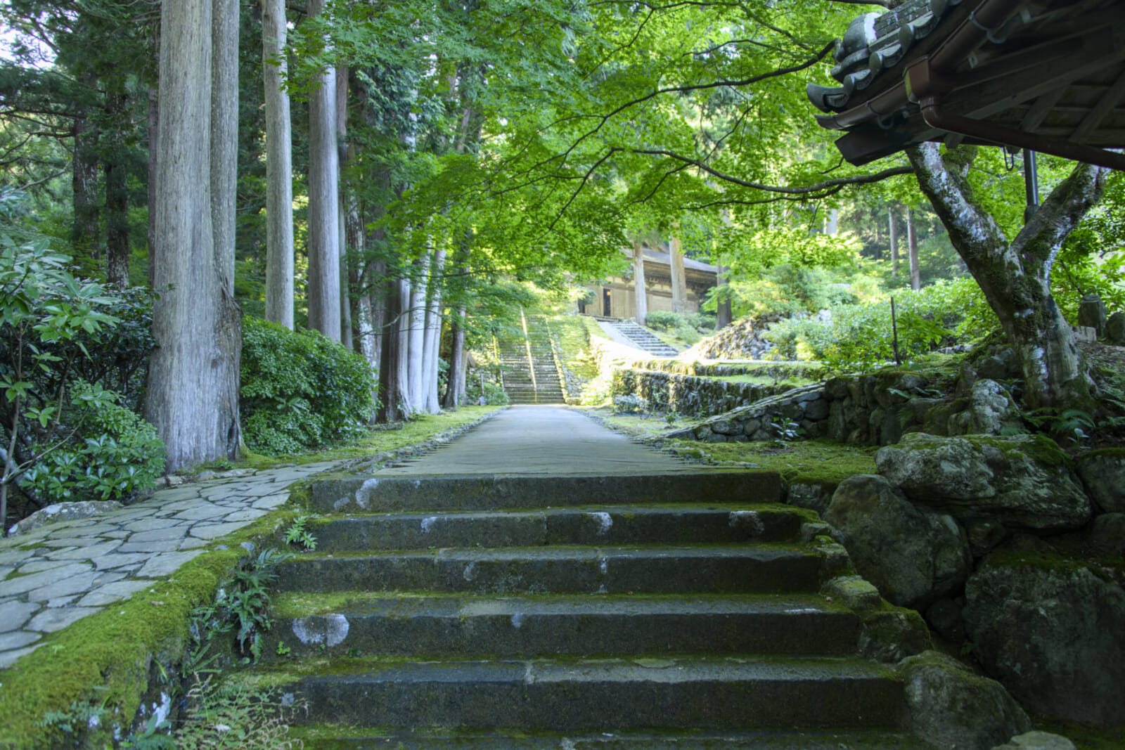 Although Myotsugi Temple is less than an hour away by car from the recently completed Hokuriku Shinkansen at Tsuruga Station, with its mossy rocks, relaxing koi fish, and abundant history, visiting this venerated spot makes it easy to take a step back in time.