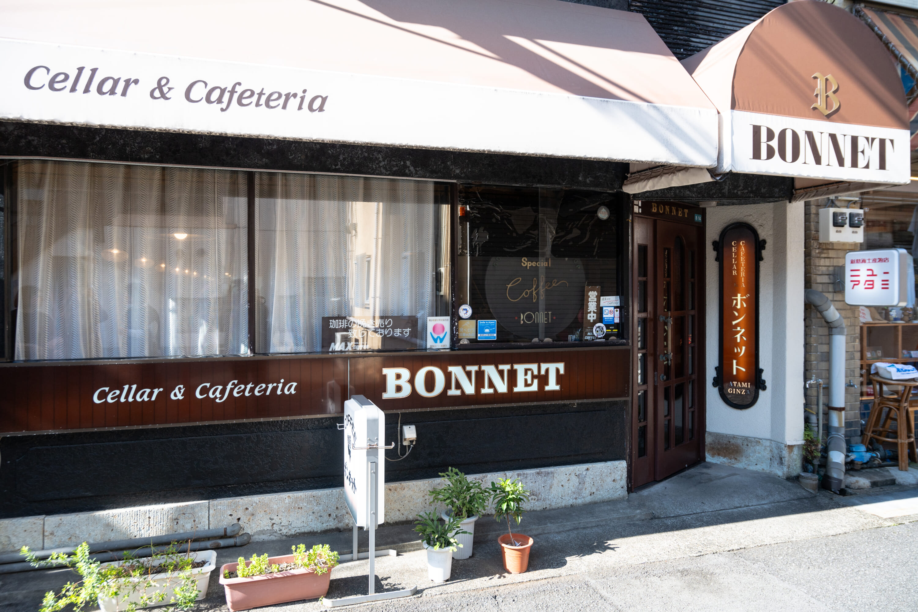 No visit to Atami feels complete without stepping into one of its nostalgic kissaten. Among the most endearing is Bonnet, a beloved local cafe tucked into a small alley off the Ginza main street. Established in 1952 as a jazz kissaten, Bonnet is known for American-inspired diner classics — handmade hamburger buns, fluffy tamago sando, fresh fruit juices and old-fashioned lemon squash.