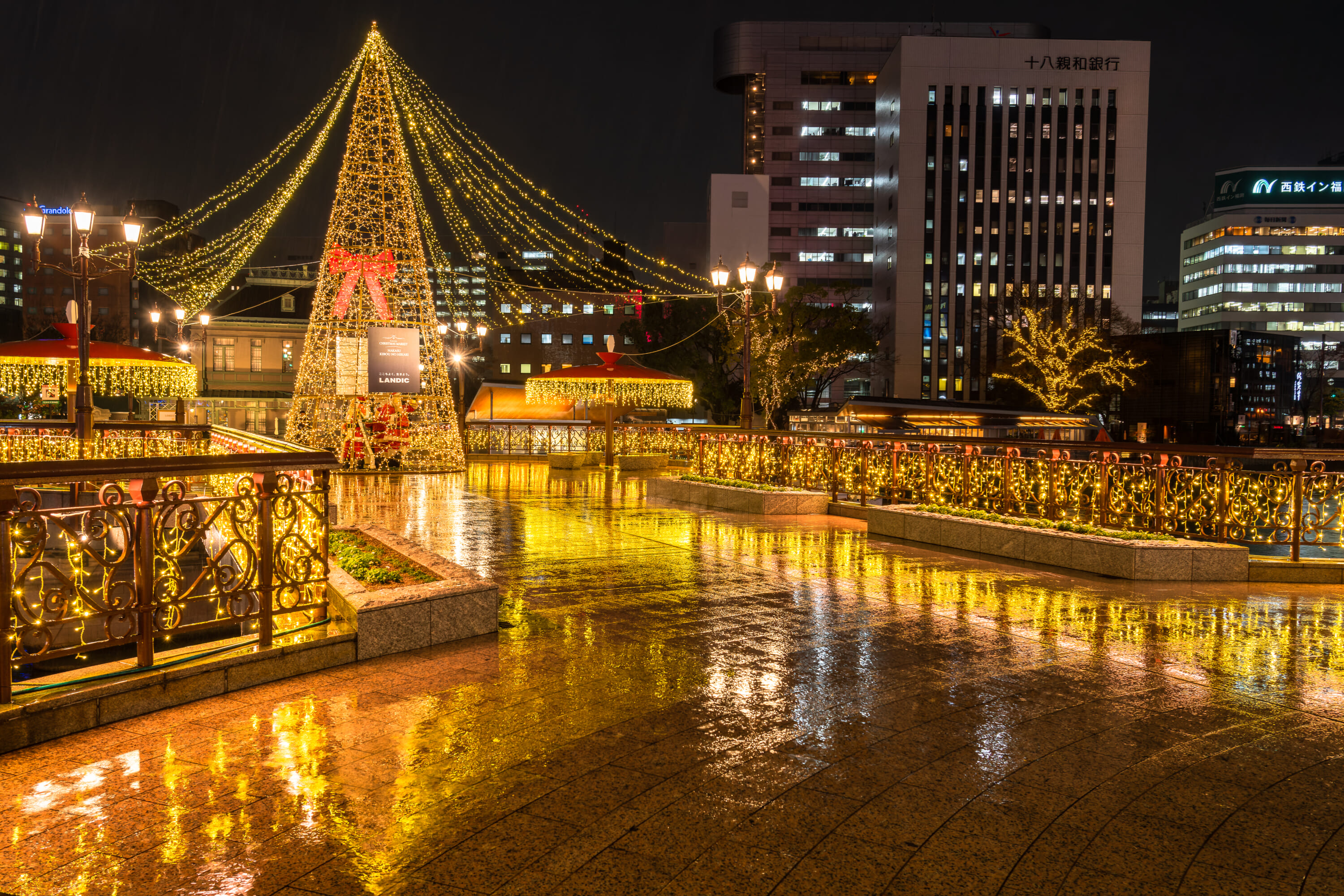 Fukuoka doesn’t see much snow, but as the sun sets, the city becomes a dazzling winter wonderland thanks to its illumination displays. The city lights up with a festival of colors, creating a romantic atmosphere that attracts couples and families alike.