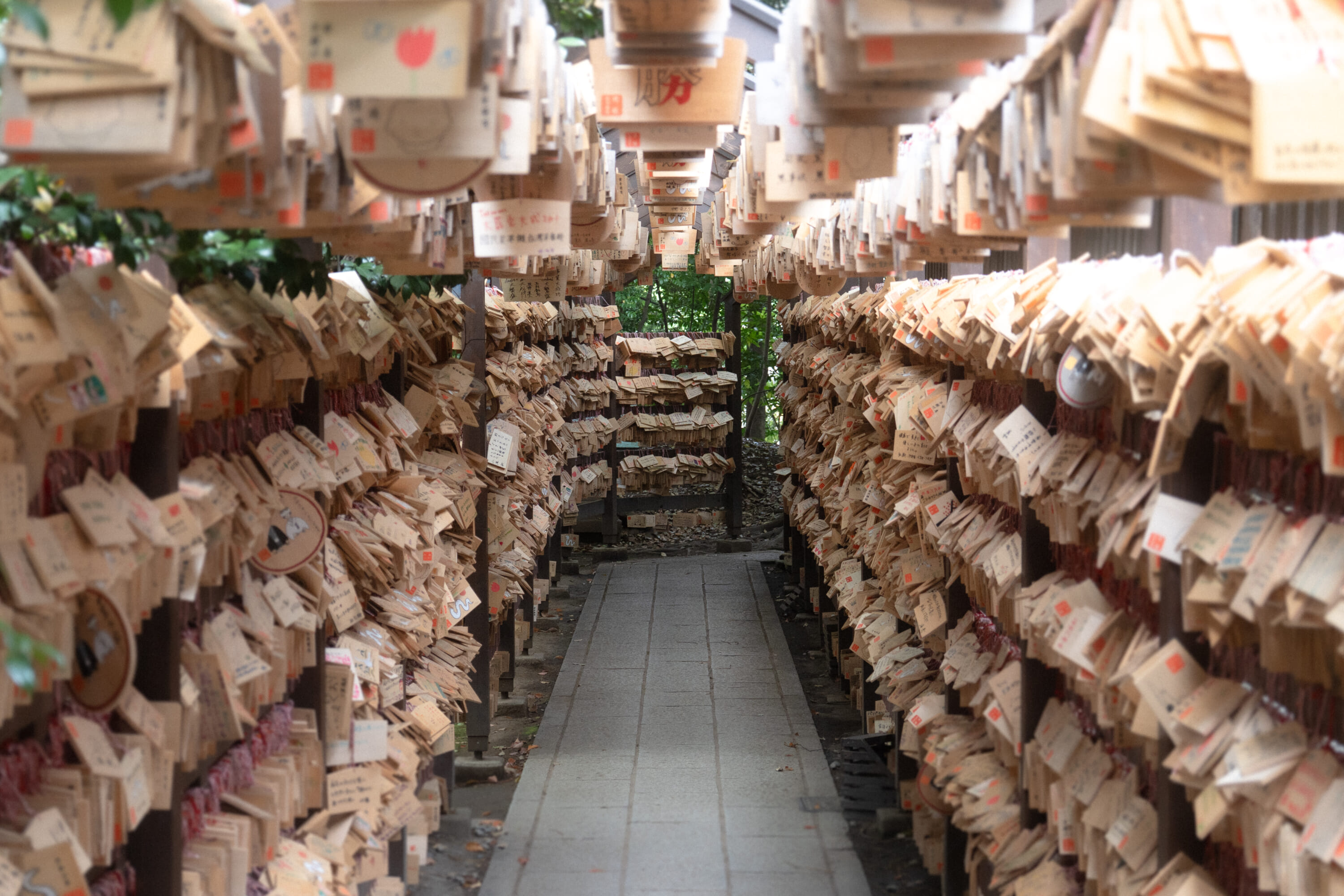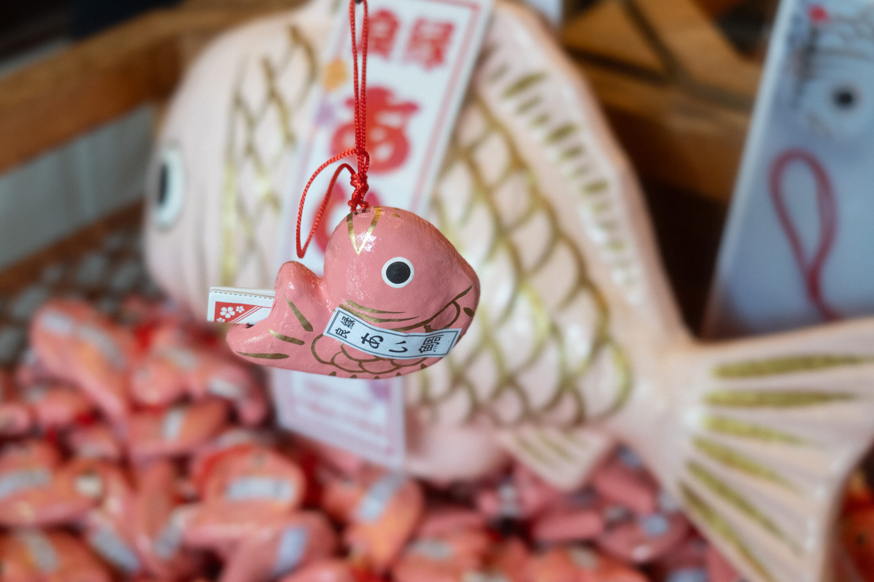 Another must-try activity: walking through the long tunnel of ema (wooden prayer plates) and fishing out a special sea bream-shaped omikuji (paper fortune), which will predict your romantic fortune.