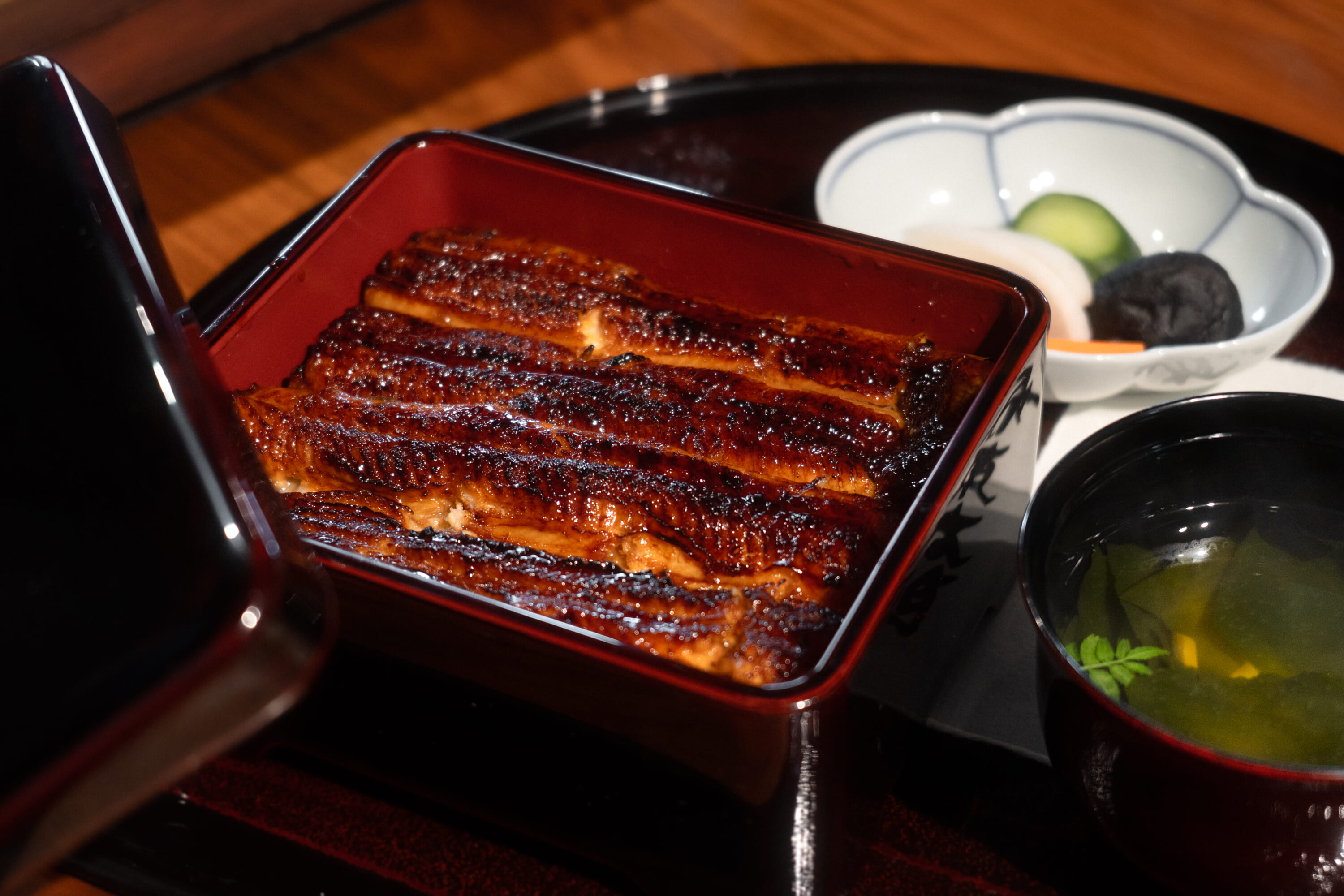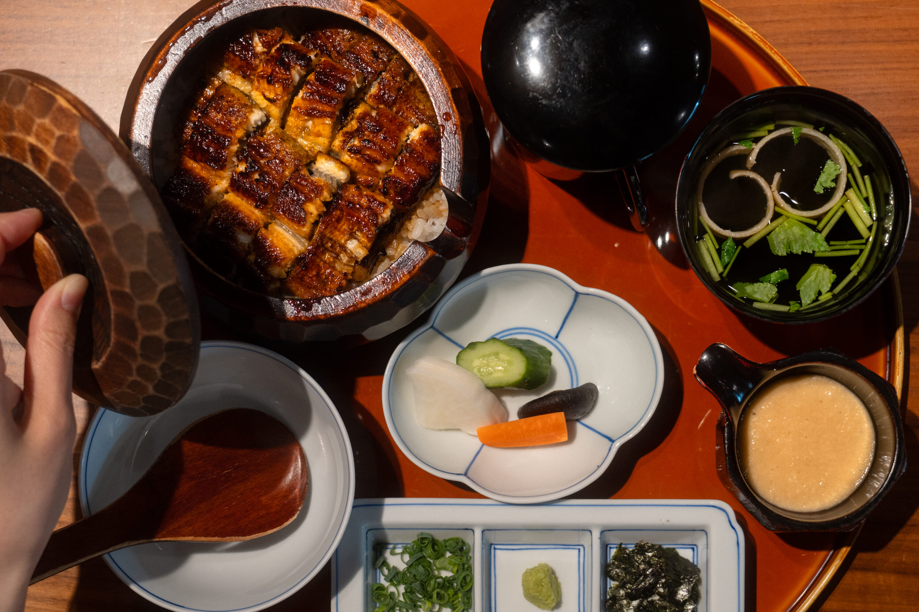 Housed in a spacious, atmospheric Meiji era warehouse once home to an apothecary, Unagi Denbe offers incredible unajyu meals. Unajyu consists of grilled unagi — freshwater eel — laid carefully atop a bed of rice in a lacquered box. We tried the shop’s bando taro premium eel, cooked kabayaki-style (with a soy-based sauce), which was sumptuous and flavor-rich beyond our expectations. For wagyu lovers, the restaurant also offers half-wagyu, half-unagi meals.
