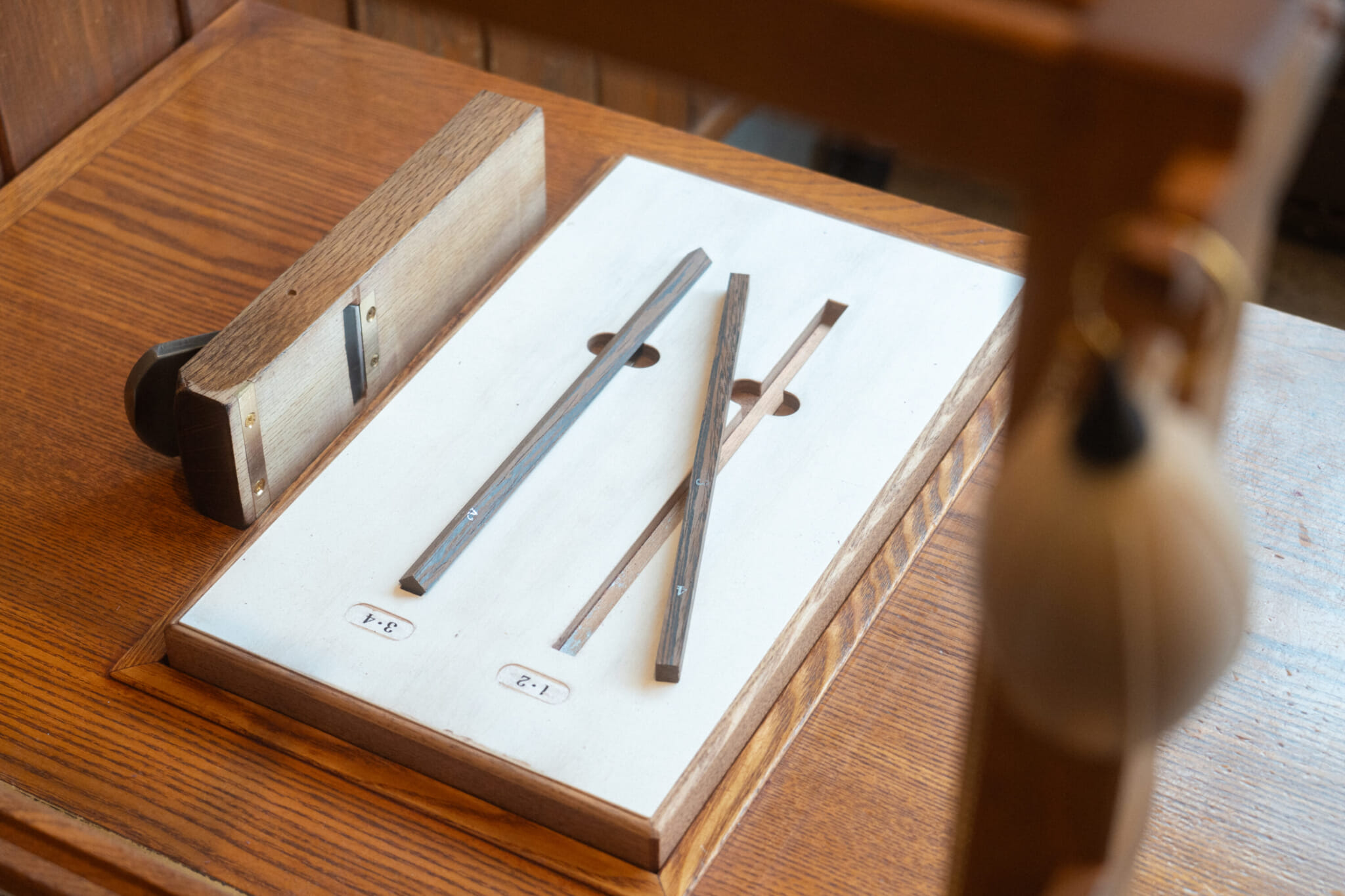 The workshop is run by Holiday, a bespoke furniture business in Yamada, Kawagoe city, and knowledgeable staff are available to guide you through the process. Each table features a phone stand above it, enabling visitors to film a cool time-lapse video of the entire process as an extra keepsake.