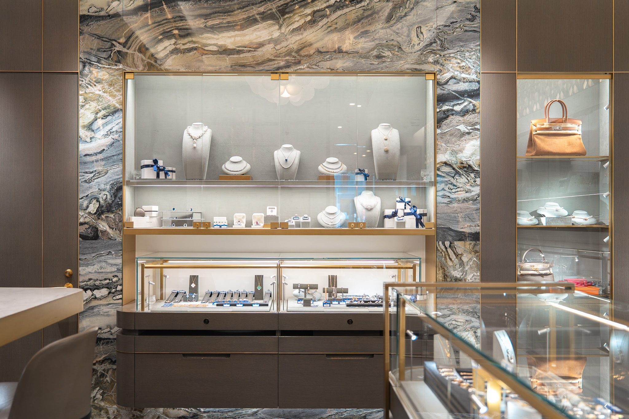 Brands featured in stores: Rolex, Patek Philippe, Richard Mille, Cartier, Hublot, Van Cleef&Arpels, Hermes, among others