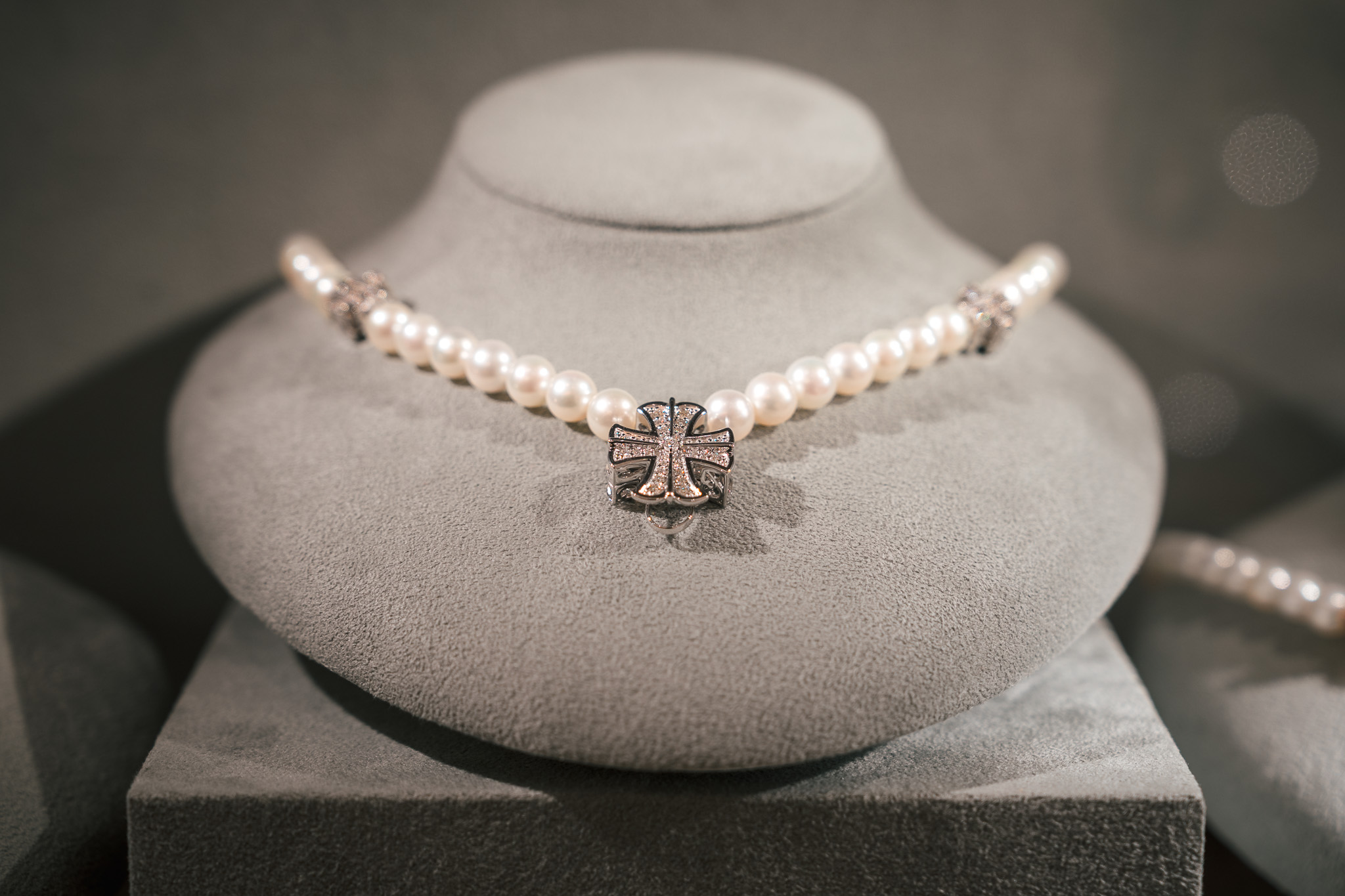 Another popular collection is the Double Top series, which includes various cross-design charms that you can link with other charms (like the Nombre initials). The collections’ newest addition is “Shizuku,” a piece that combines ornate cross charms with Akoya pearls, which are prized for their radiant luster and flawless form and cherished as a symbol of Japan’s rich pearl-crafting heritage. The necklace comes in yellow gold, white gold and rose gold.