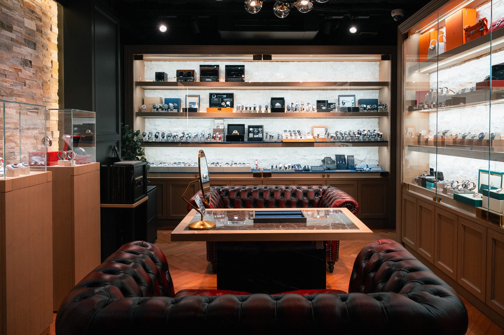 Brands featured in stores: Rolex, Patek Philippe, Richard Mille, Audemas Piguet, Omega, Cartier, Hermes, among others