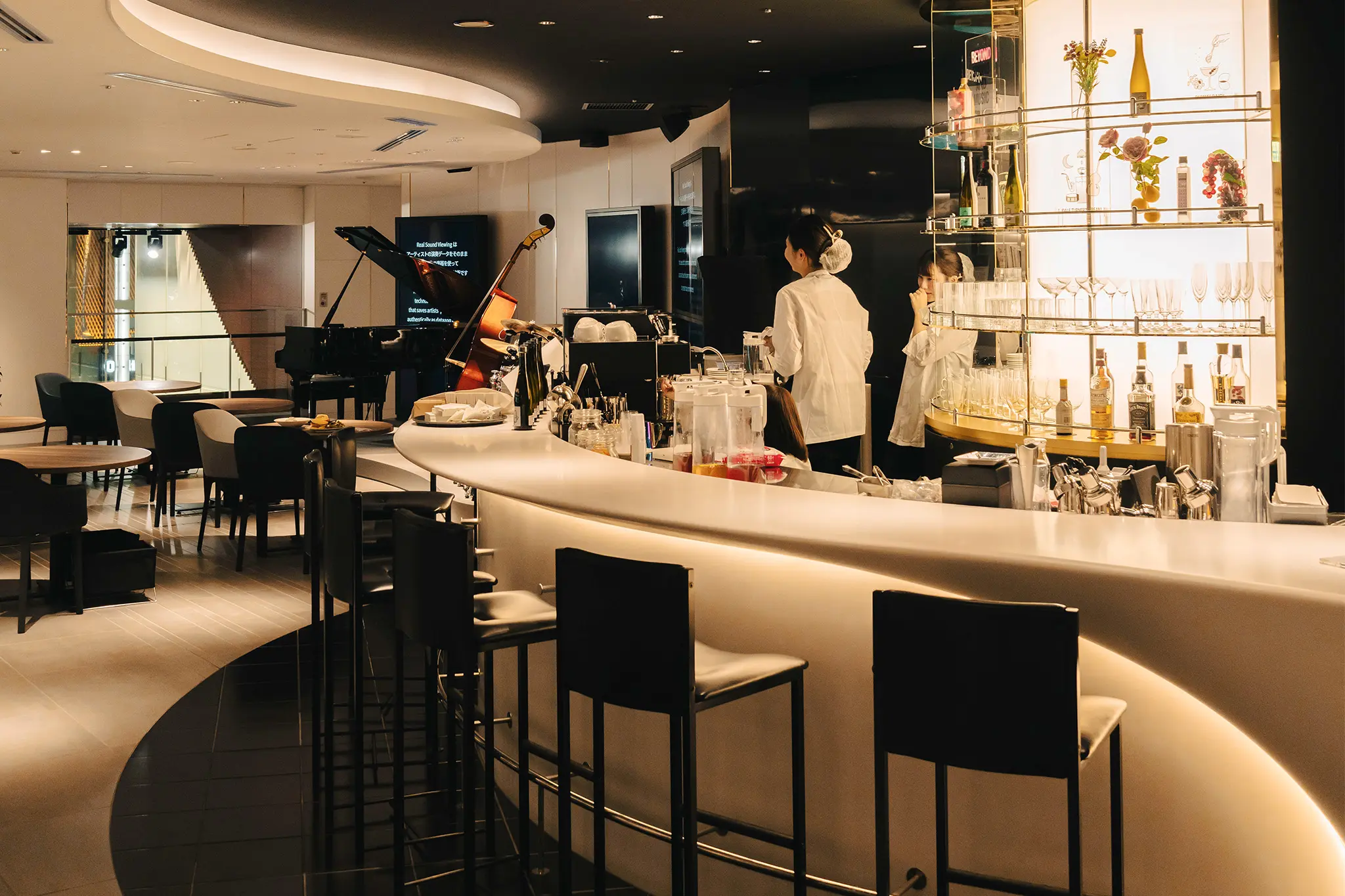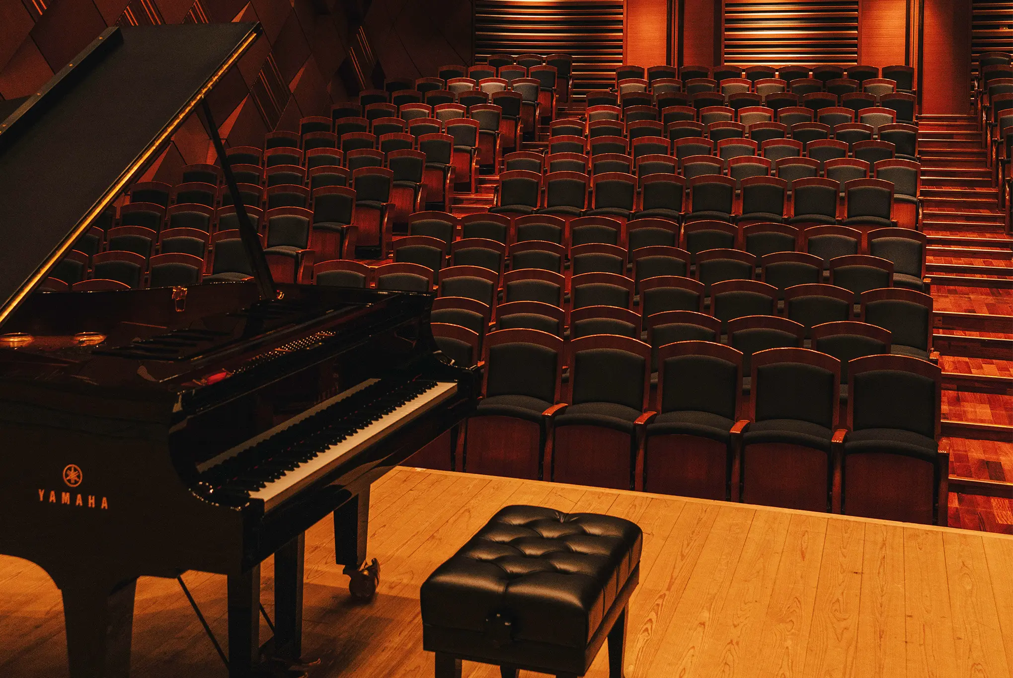 Head up to the concert hall from the restaurant, ascending the sound-proofed stairs compactly built to twist round and round, leaving the hustle and bustle of Ginza behind, to enter the Yamaha world where music is paramount. Luxurious seats and an extra-special sound experience await.