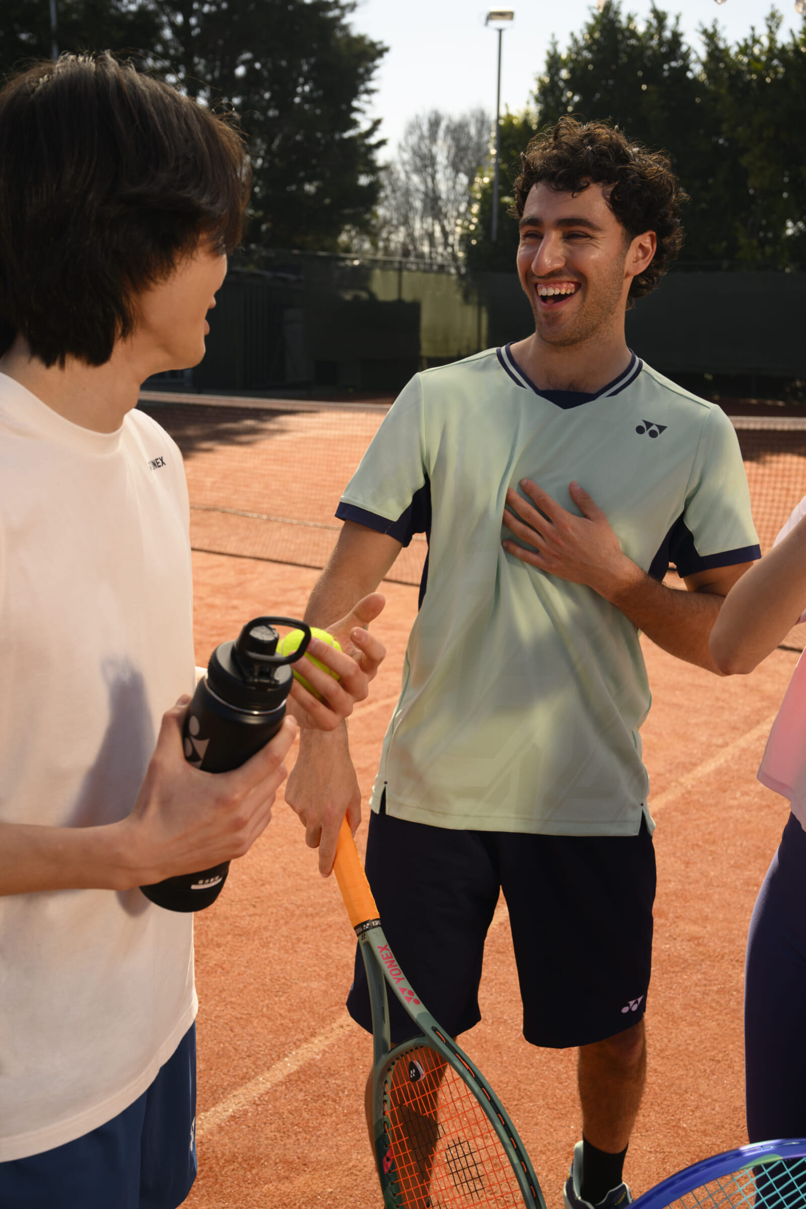 Its core message, “Built for on-court conditions,” gets right to the point: The brand’s priority is enhancing performance where it matters most — on the court, during the heat of a match. To do this, Yonex engages in never-ending innovation. The brand’s Verycool (stylized as VERYCOOL) technology uses xylitol, a substance derived from plants and trees like birch, to create a soft, moderately thick cooling fabric. Impregnated with xylitol, Verycool clothing absorbs heat and perspiration, lowering body temperature inside apparel by 3 degrees Celsius, regardless of ambient temperature. Perfect for intense heat on outdoor courts, Verycool also prevents fabric from sticking to the skin, ensuring comfort during long, intense rallies.