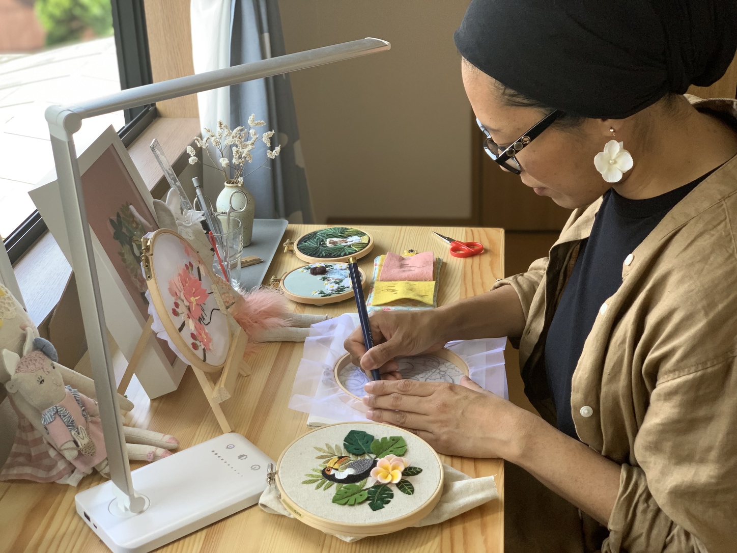 To pass the time, I visited a craft store near where we lived. That was the start of me rediscovering my creative spirit. Initially I tried many things, like crocheting and paper cutting and I would simply follow the instructions provided. But when I picked embroidery, I found myself challenging each piece and getting excited at the outcome. That’s when I knew that embroidery would be different for me.