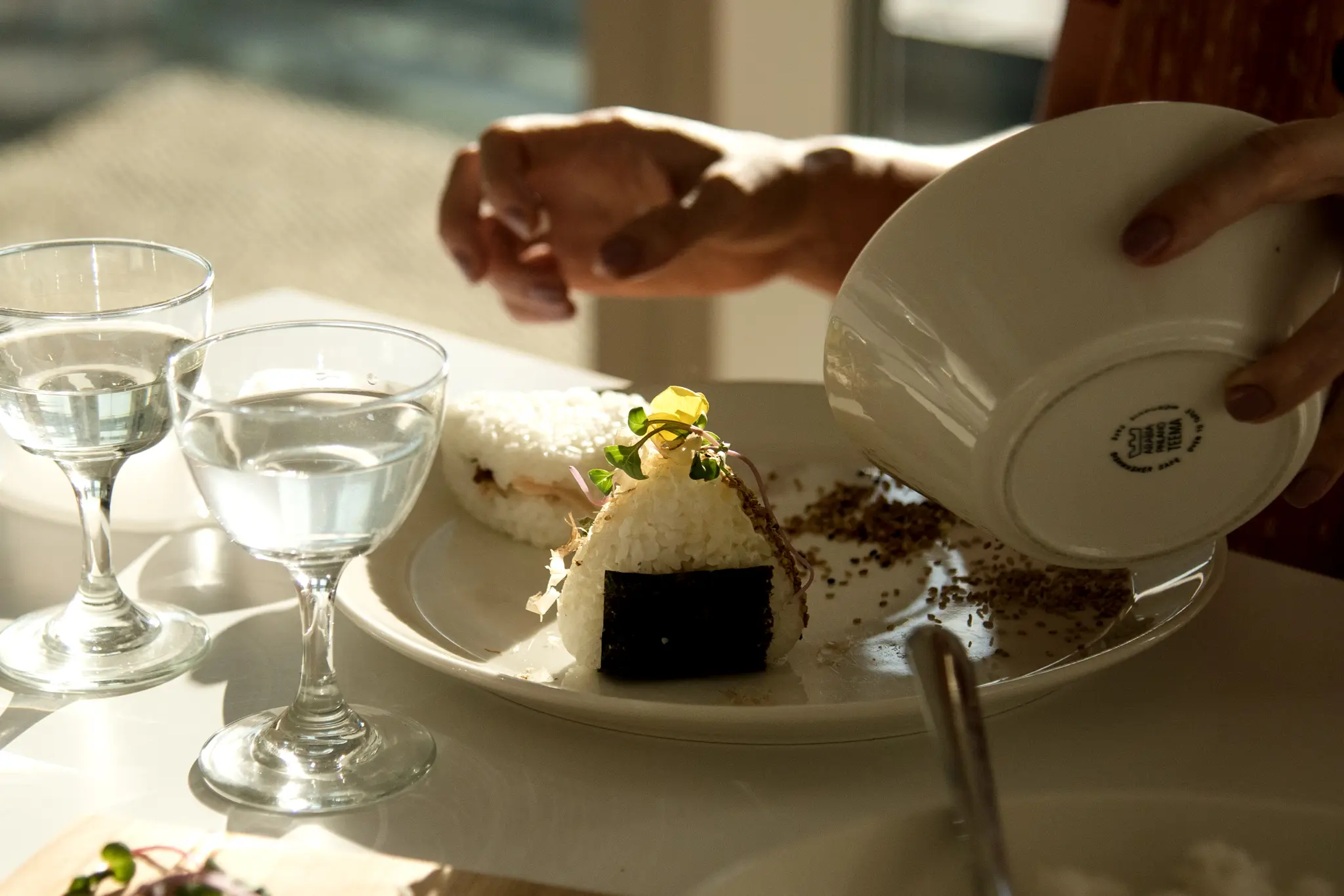 “Sake and onigiri share the same main ingredients — water and rice — and the quality of these ingredients is equally important for both,” Narisawa explains.