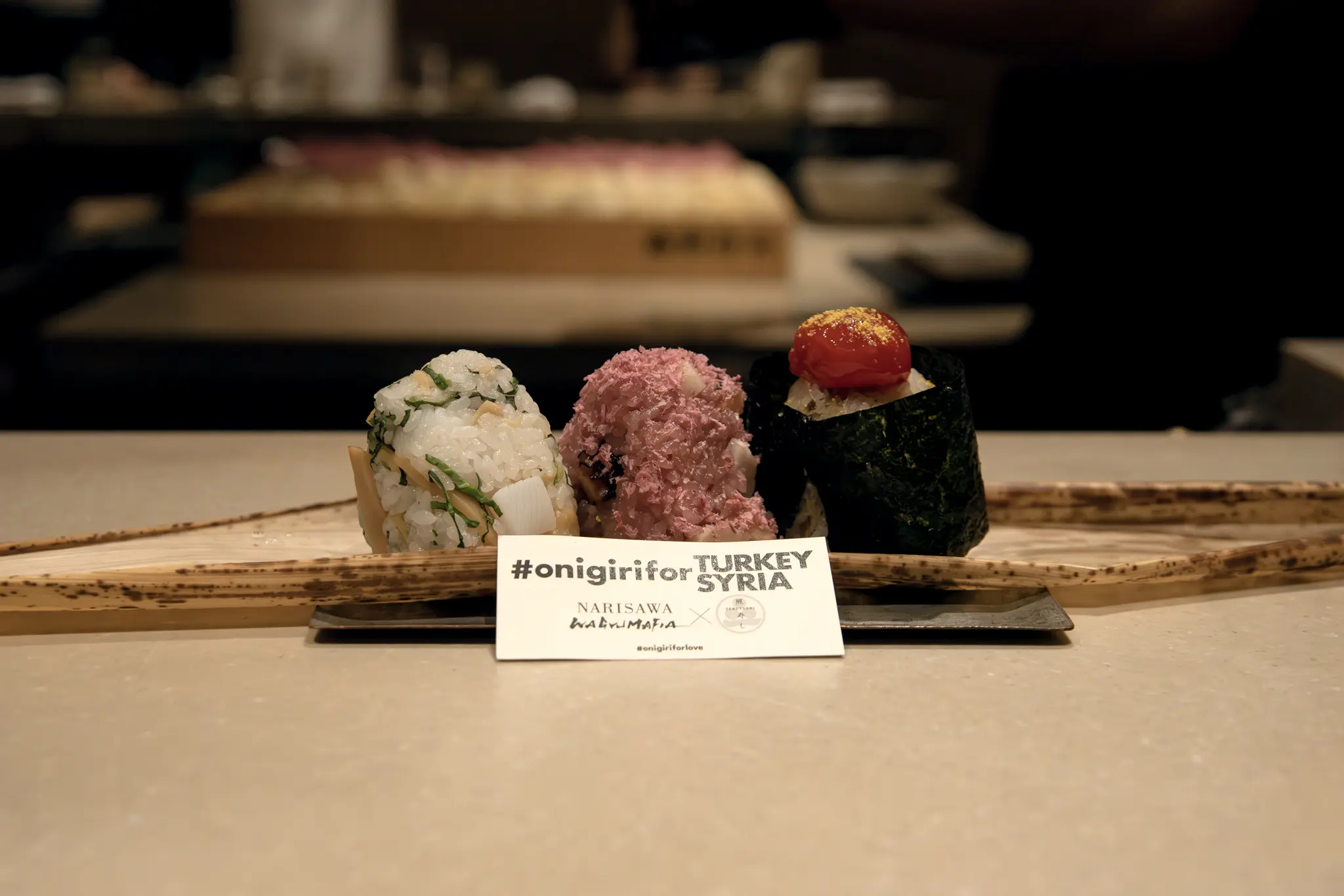 The latest iteration of the ever-evolving project came together quickly in response to the devastating Turkey-Syria earthquake of February 6, 2023. The chefs, along with friends and longtime Onigiri for Love participants Takayoshi Watanabe of Kyushu’s Teruzushi sushi restaurant and Hide Izaki, a coffee master, held an Onigiri for Turkey and Syria charity breakfast in Tokyo with all proceeds going to UNICEF for the affected areas.