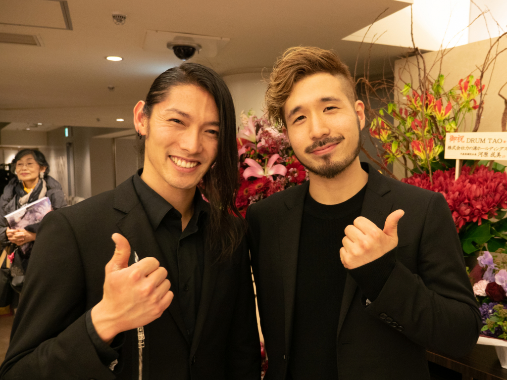 Drum Tao headliner (and Tokyo Weekender cover star) Daisuke Fumoto and Drum Tao drummer Yasuaki Ogino at the Drum Tao party.